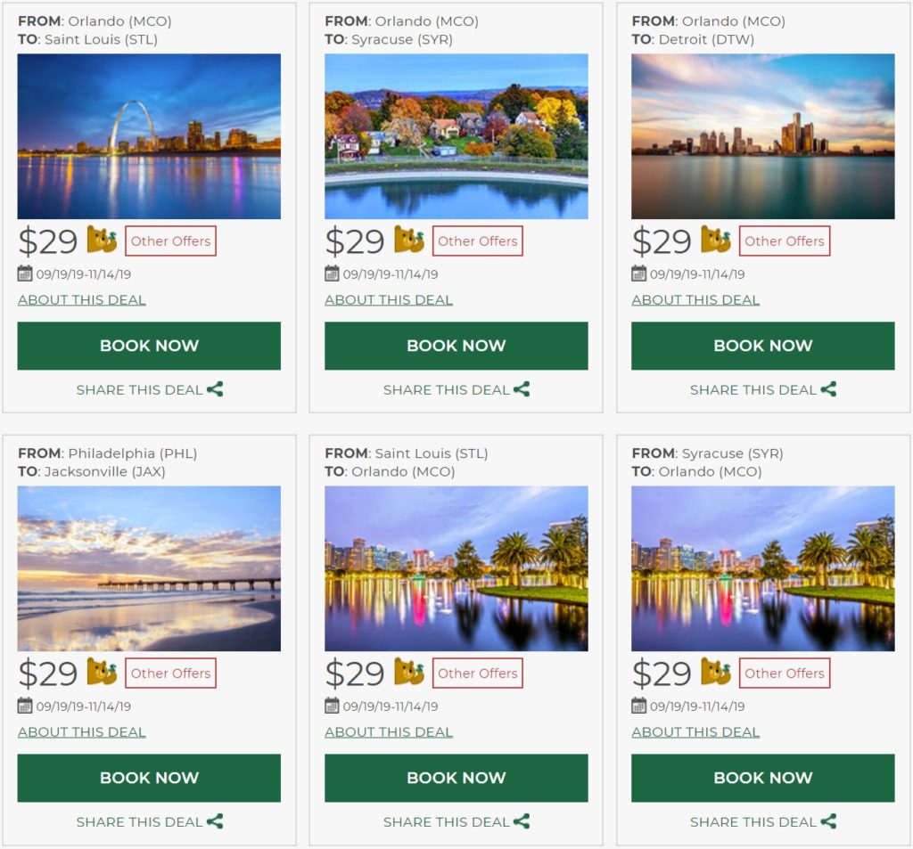 Their sale page was always slightly clunky, with pictures of each city advertising the deals. That meant you could only see a few fares at a time, leading to a lot of scrolling and hunting.