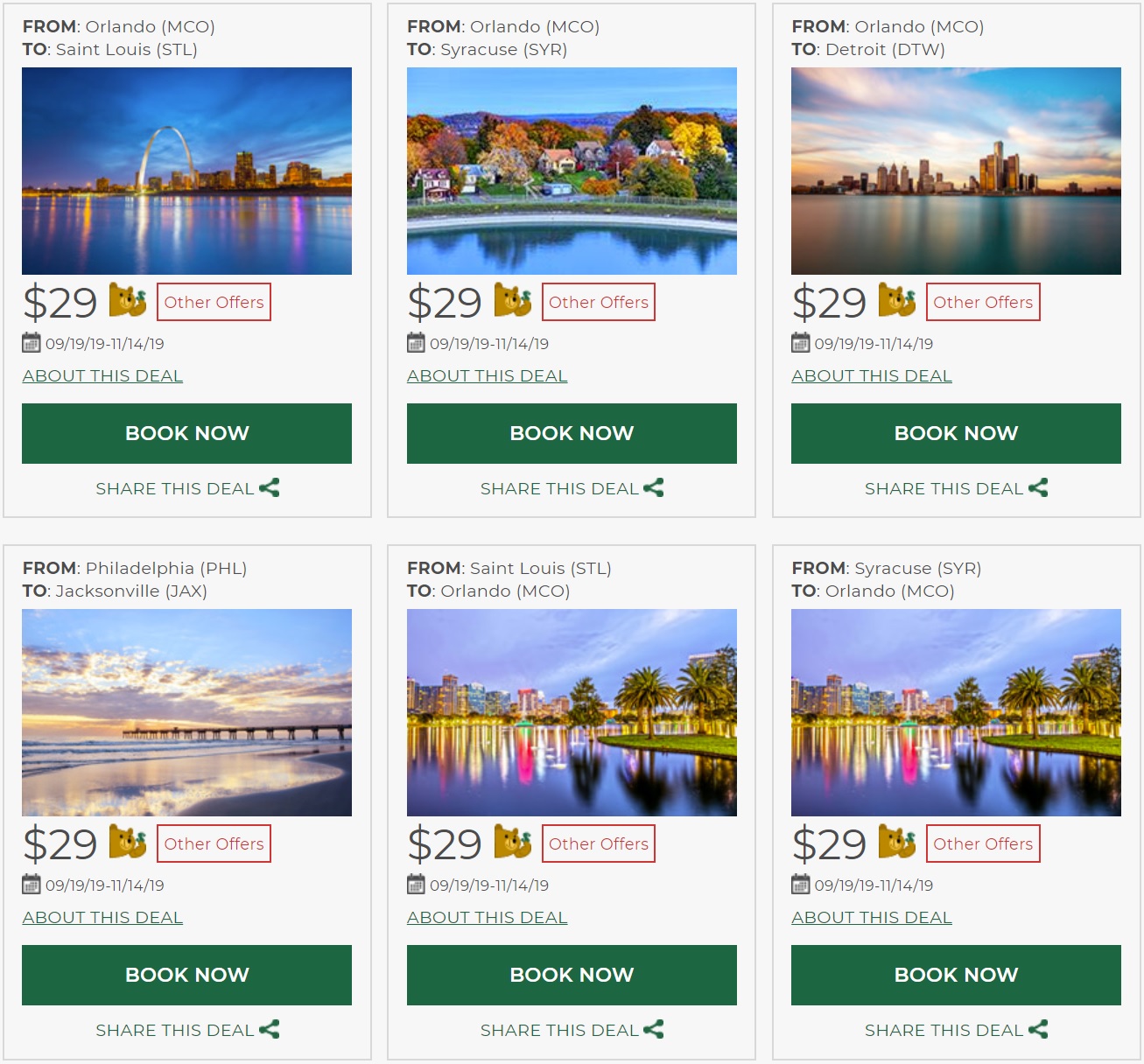 Right now Frontier isn’t really running a sale, but are showing some good fares between cities. The new discount page shows regions available…
