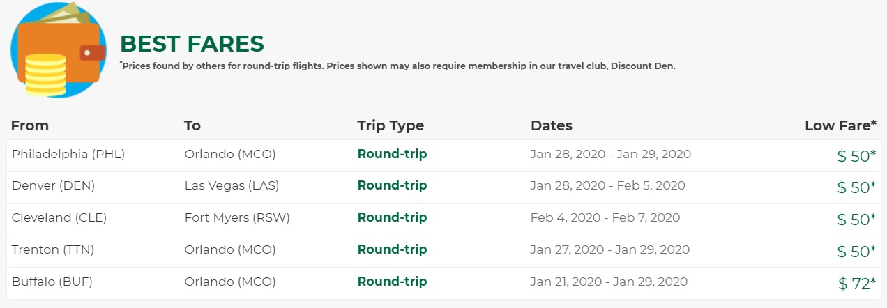 But Frontier has changed their advertising, and is now showing prices for round trip fares. I’m a fan of this change; not only are most bookings round trip, but Frontier’s sale fares are usually the same between cities in a pair. Also if you weren’t flying on sale days, it encouraged buyers to look for other ways home, which is probably not good from a business standpoint.