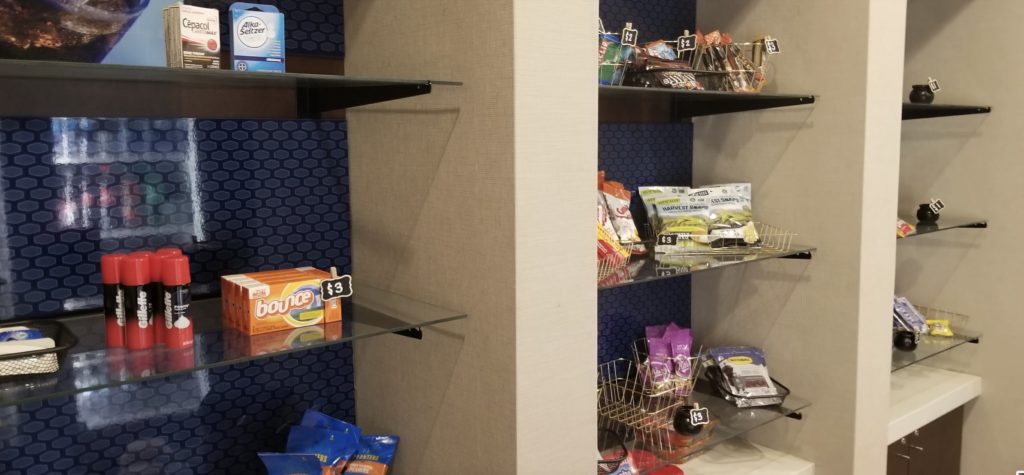 Directly next to the front desk, there is the normal display of overpriced food, drinks and toiletries.