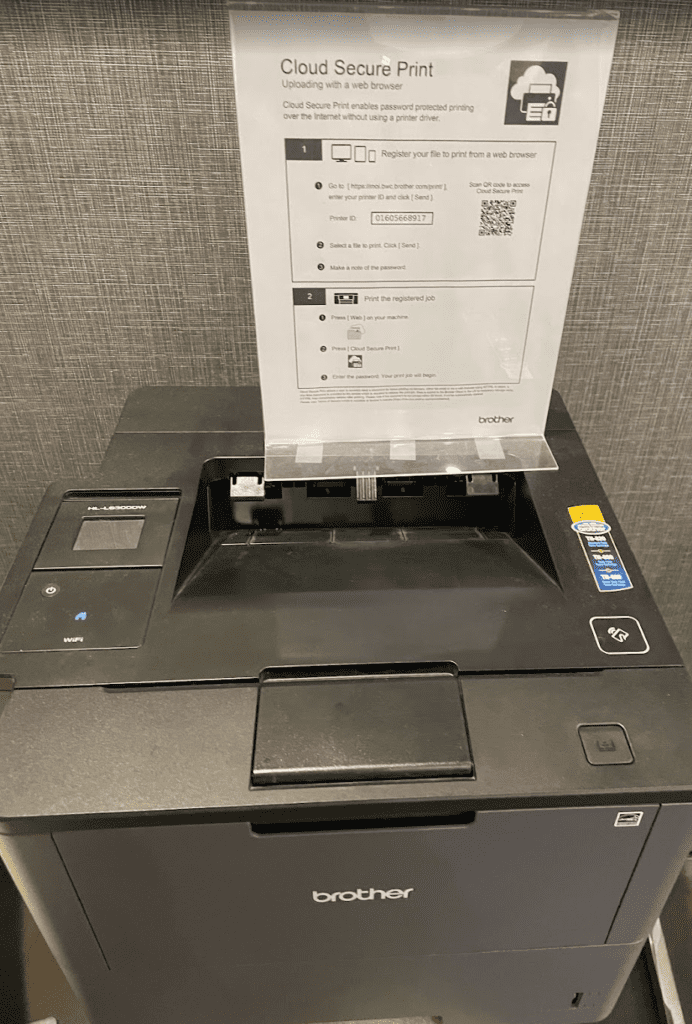 There isn’t a separate business center, however there is a small computer and printer area next to the front desk that is available for guests, if you need to print a boarding pass, directions or anything