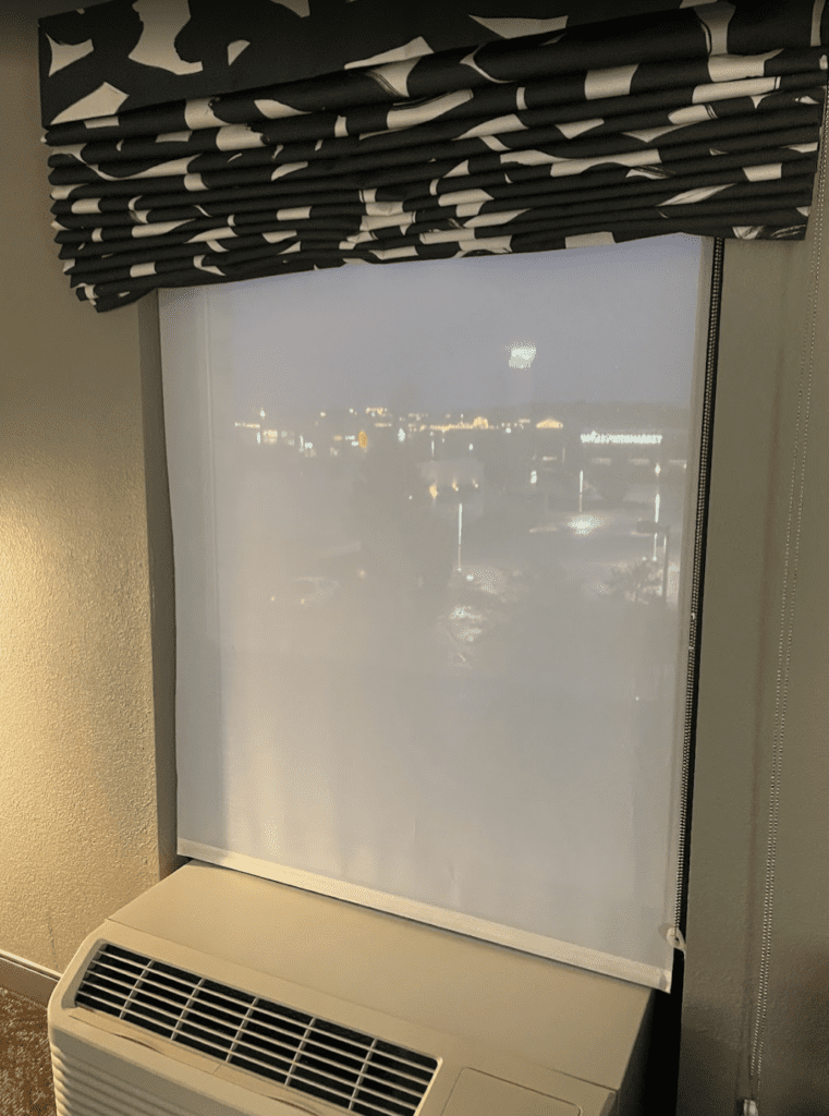 One nice feature of these rooms is that the window was taller than it was wide, which meant that there was no problem of light flowing through a gap in the curtains.