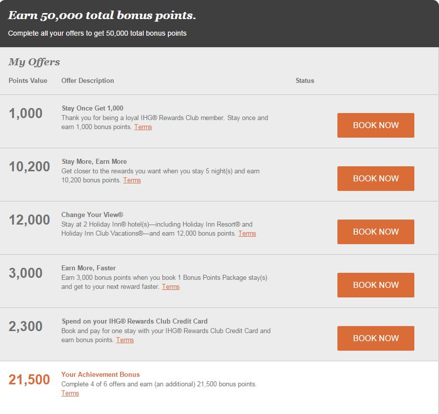 Note that I already have a 7-night stay planned at a Holiday Inn Express, that will get me (1), (2), (4) and (6). All I have to do is book a bonus points package at any other brand and I’ll get the rest.