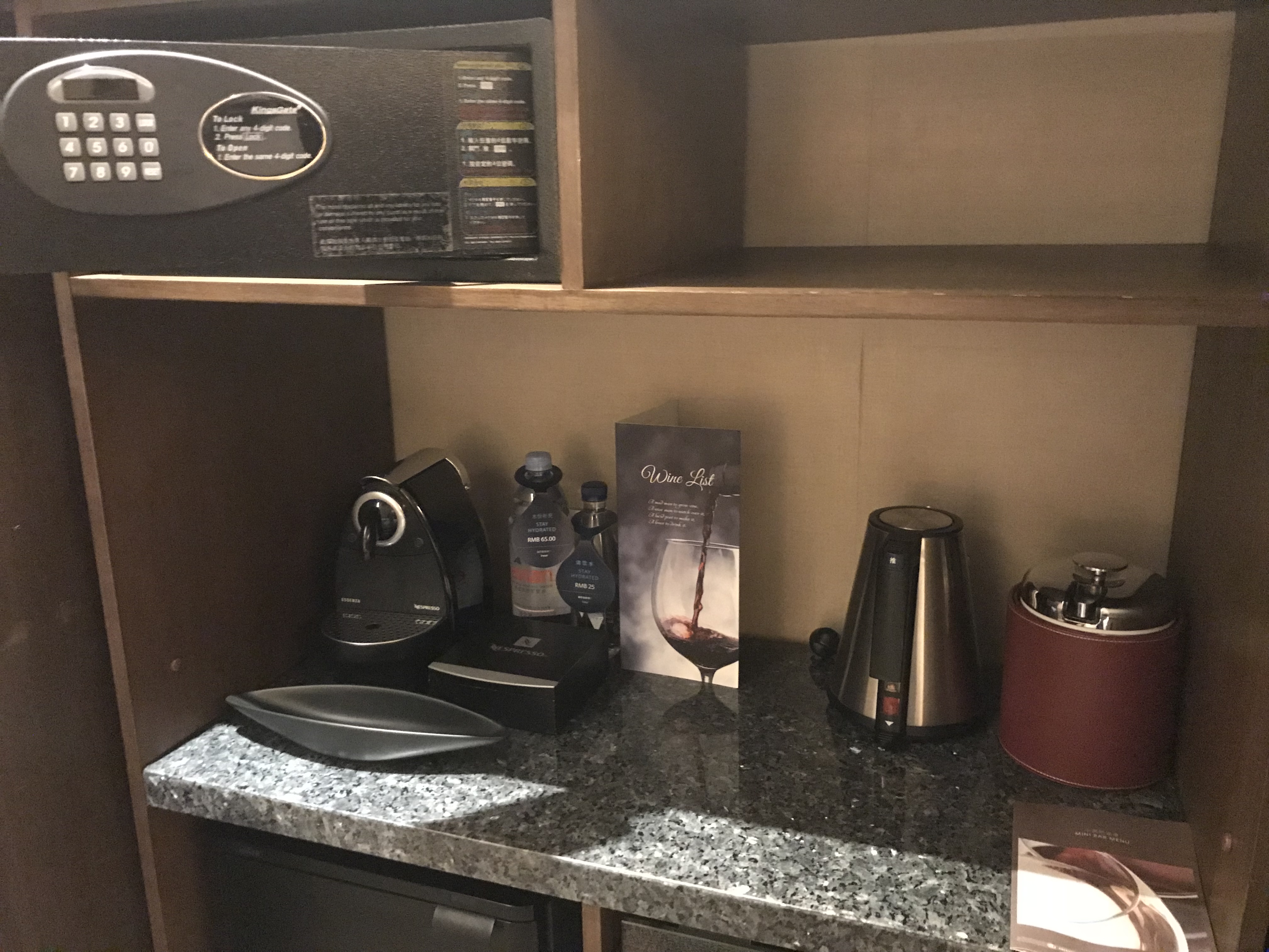 The Hilton Beijing Executive Room had an interesting coffee maker, a style I’d never seen before. You had to insert these very tiny pods into it, much smaller than the typical Keurig K-cup. There was also a minibar below. The kids quickly learned that this the minibar is not fair game, and they don’t even ask anymore. No way I’m paying $3 for a can of soda.