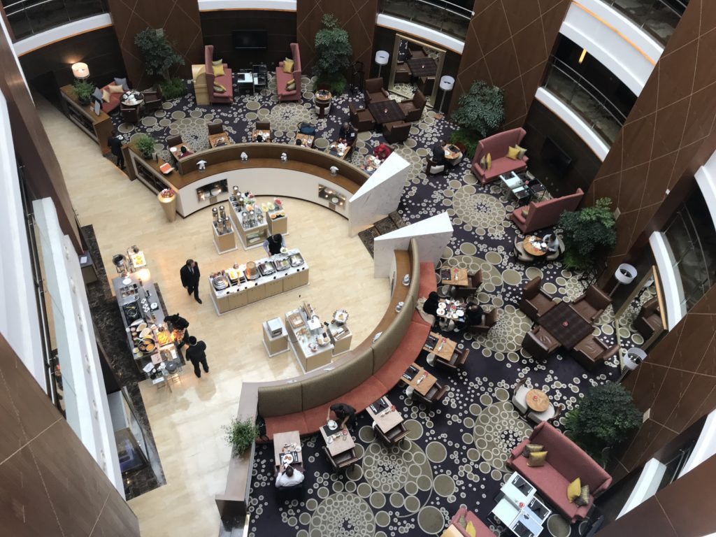 The Hilton Beijing Executive lounge in very nice. It is on the third floor, at the bottom of the large atrium in the middle of the executive tower. I’ve always liked hotels of this design. The Holiday Inn Old Sydney had a similar atrium (SEE: Holiday Inn Old Sydney Review).