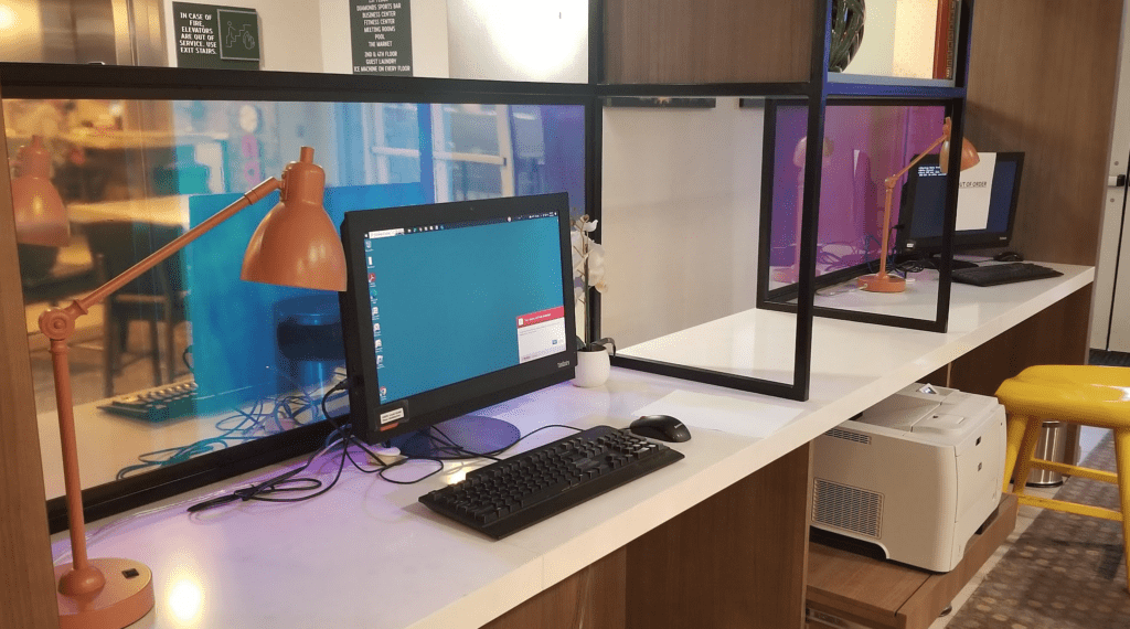 There is a small computer and printer next to the front desk that is available for guests, if you need to print a boarding pass, directions or anything.
