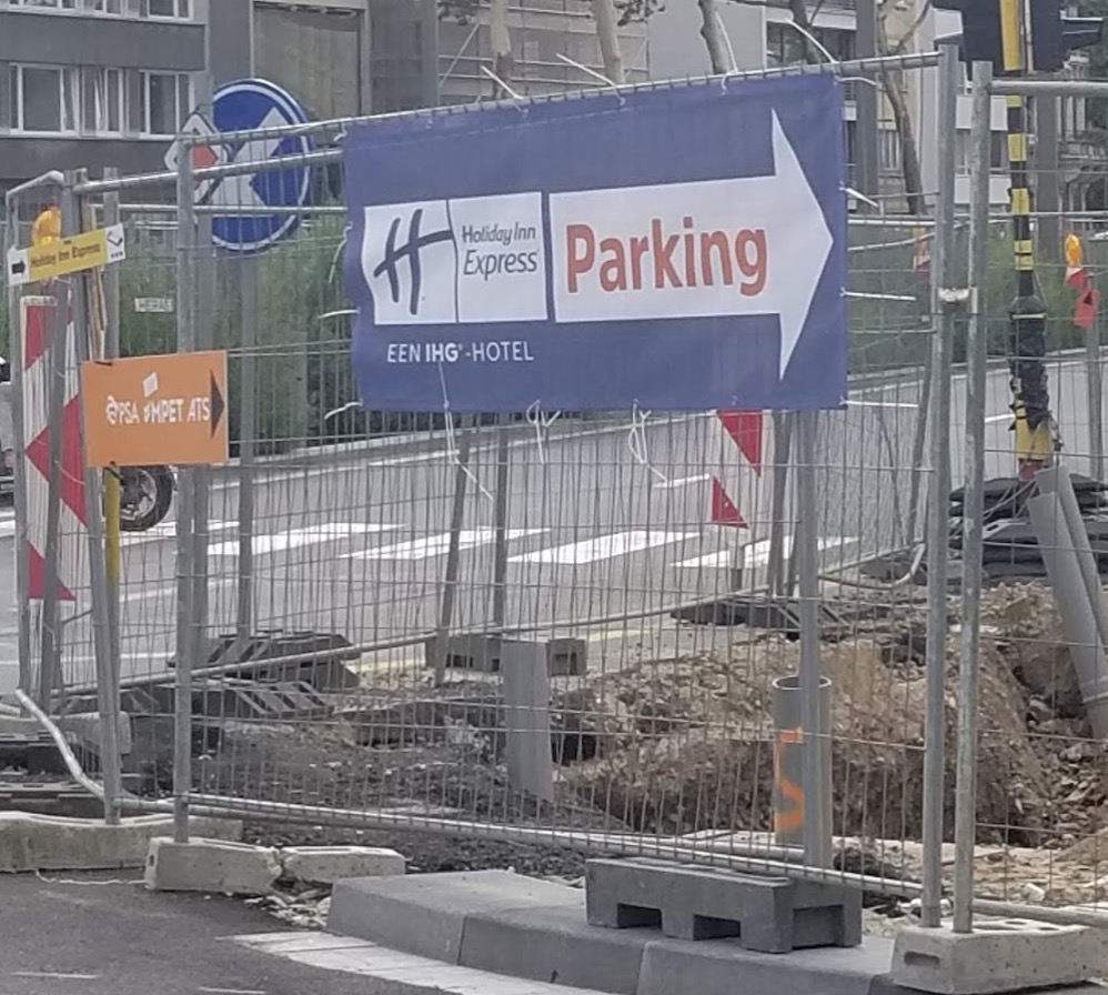 There are a small number of spots marked in the garage for Holiday Inn Express Antwerp North parking, and unfortunately, Hertz had given us a gigantic SUV even though I had rented a small car (SEE ALSO: Why you’re foolish to rent a “standard” car), which made it quite difficult to park in the spots provided.