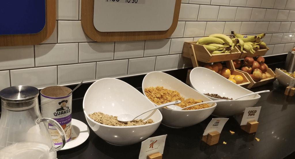 The Holiday Inn Express London – Hammersmith breakfast is served on the main floor next to the front desk and is complimentary for all guests. One interesting thing that I had not seen before is that they had a staff member downstairs checking off room numbers for breakfast before they “let” you into the breakfast area. I put “let” in quotes because the security was not super tight if you really wanted to get around it.