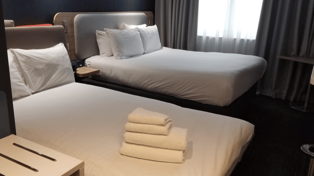 I had reserved a Family Room, which is the room at the Holiday Inn Express London Hammersmith that will sleep four people. This is exactly what I got. When we got to the room, the sofa bed was already laid out for us.