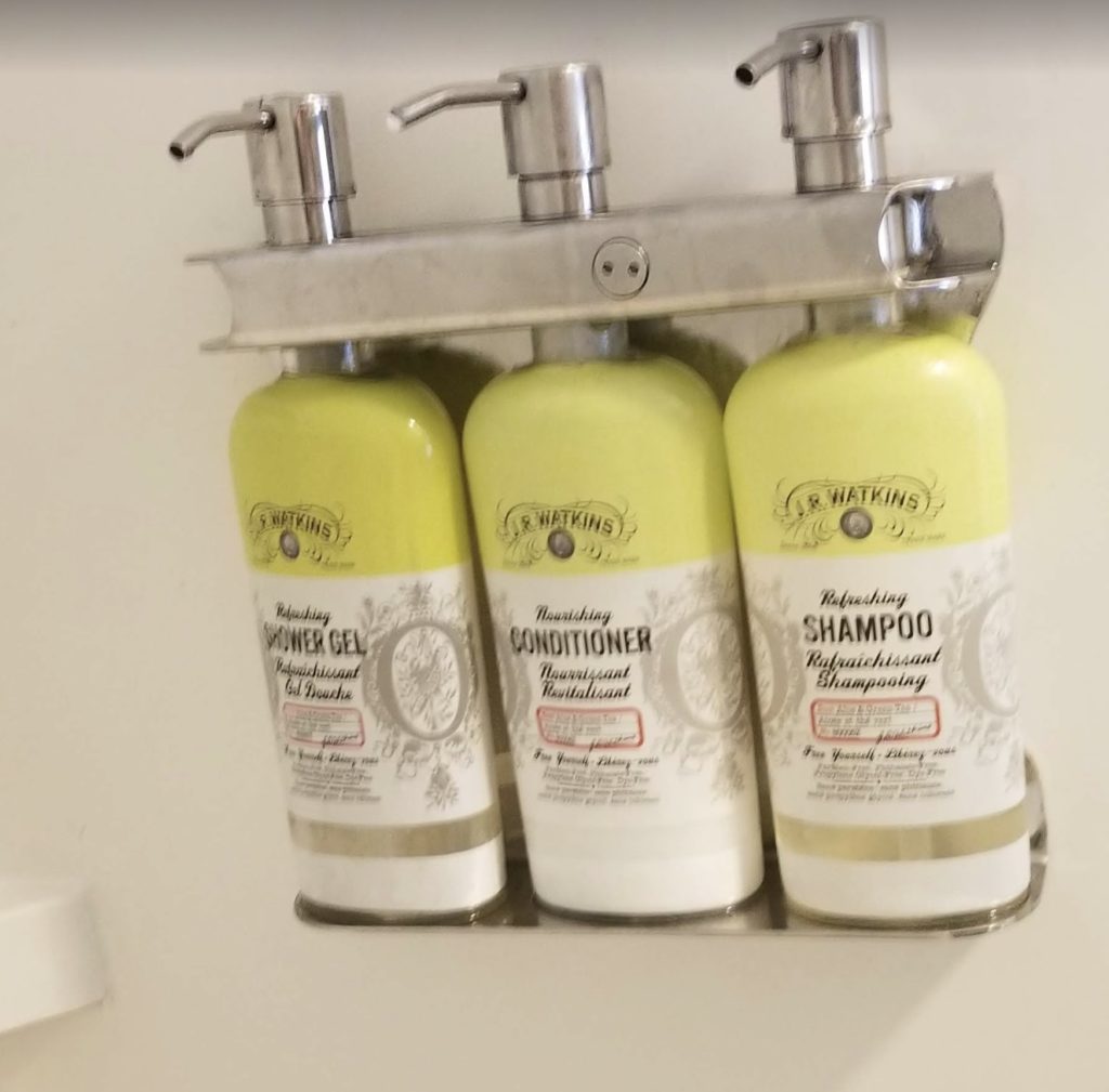 Like many IHG hotels, there are not single-use toiletries, but instead the big bottles of shampoo, conditioner and “shower gel”
