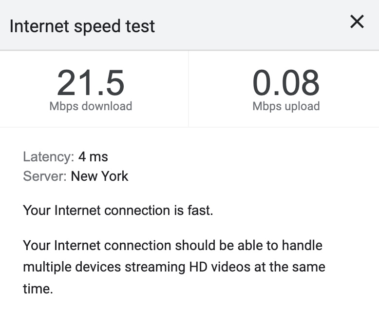 WiFi at the Holiday Inn Express Times Square South was decent, but the upload speed was super slow. I didn’t have a problem streaming videos or doing email / blog work, but I did try to do a voice call (via Discord) and it was super choppy. I’m not sure if that’s related to the upload speed or not.
