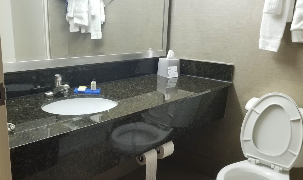 The bathroom was small but did the necessary, and the shower pressure was adequate. One minor issue was that there was not much hot water for the shower, which is unusual for a hotel. When I mentioned it at checkout they said maintenance had been working on it all morning. So I wouldn’t expect that to be an issue if you were staying there later.