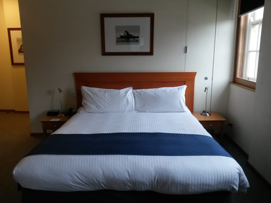 The bed was typical plain Holiday Inn, but comfortable. The art in the room (of course) featured Opera House and Harbour Bridge photos. I’d see both of those in person soon enough.