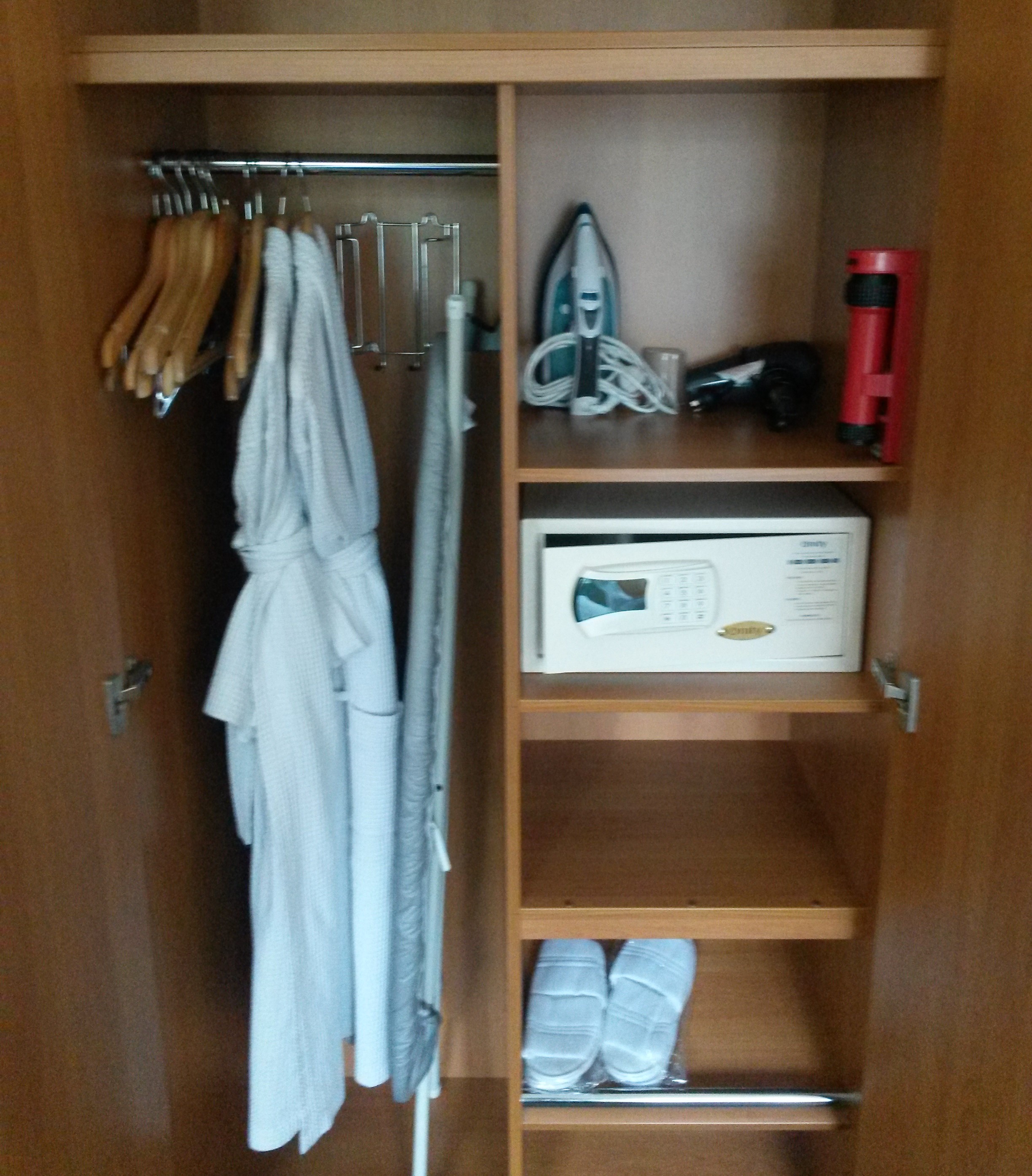 The closet had the usuals: robes, slippers, iron, hair dryer, and safe. I thought about unpacking my stuff into it, but for only two nights, it didn’t really make sense.