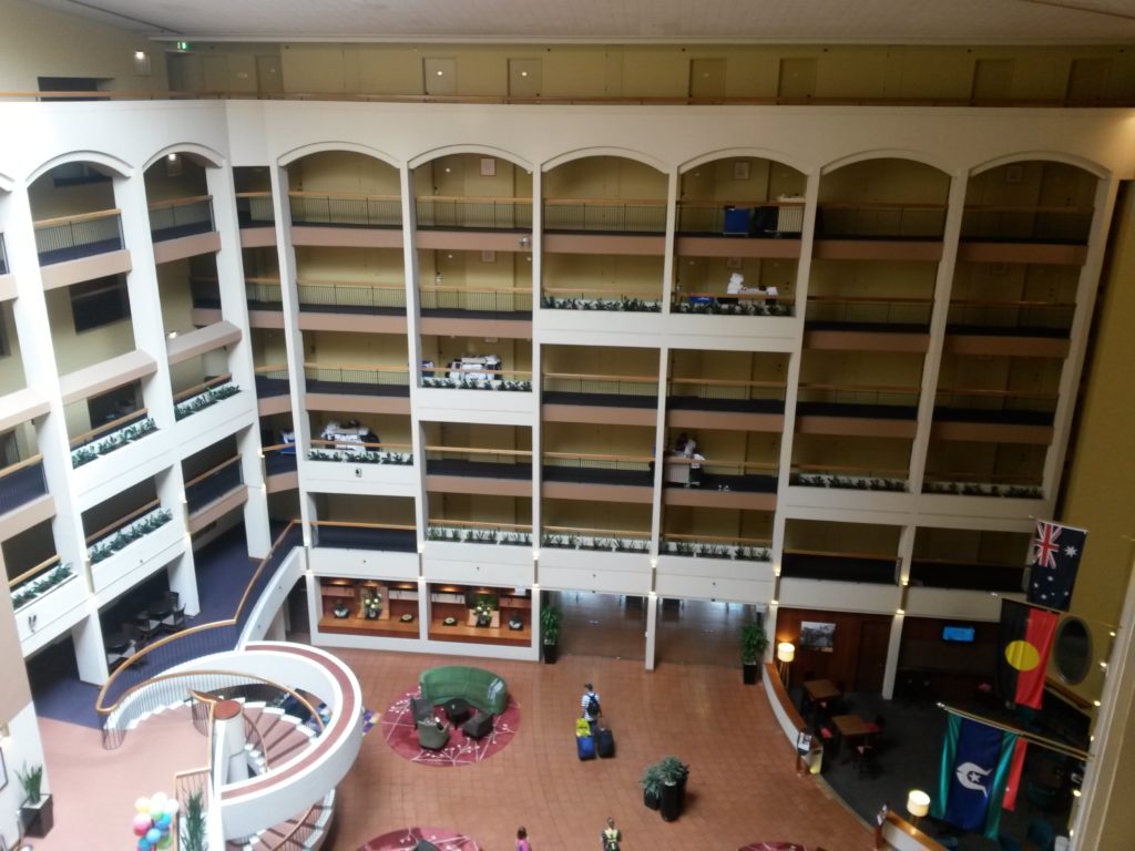 Holiday Inn Old Sydney in a nutshell, the pros: fantastic location, neat atrium design, good IHG option, decent (but not free) breakfast, rooftop pool area with views of the city and harbour. The cons: plain rooms, old building.