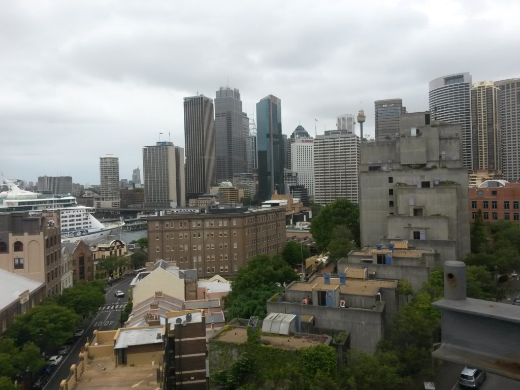 I got some good shots of the CBD from the bridge. You can see the brick edifice of the Holiday Inn Old Sydney in the center.