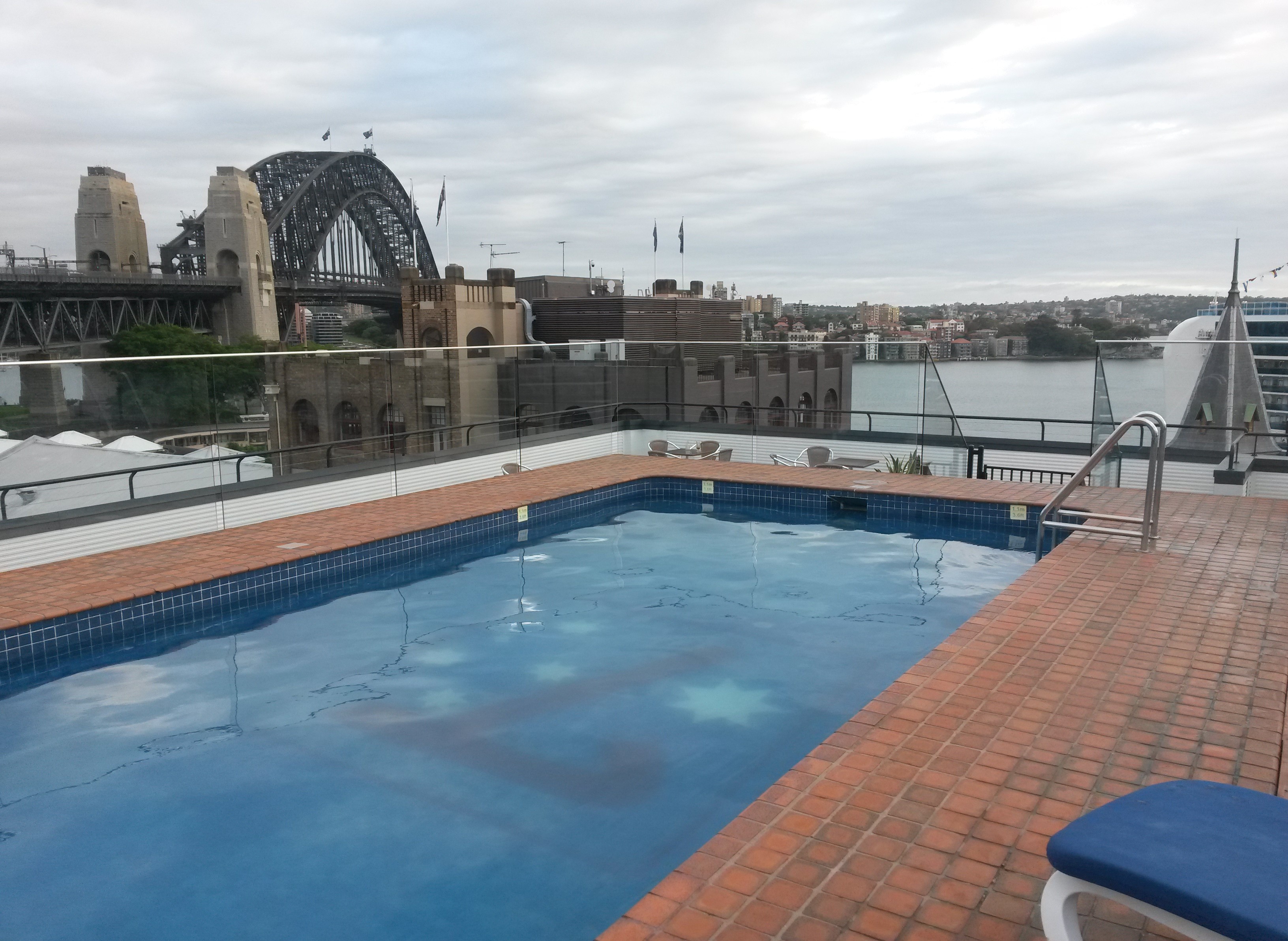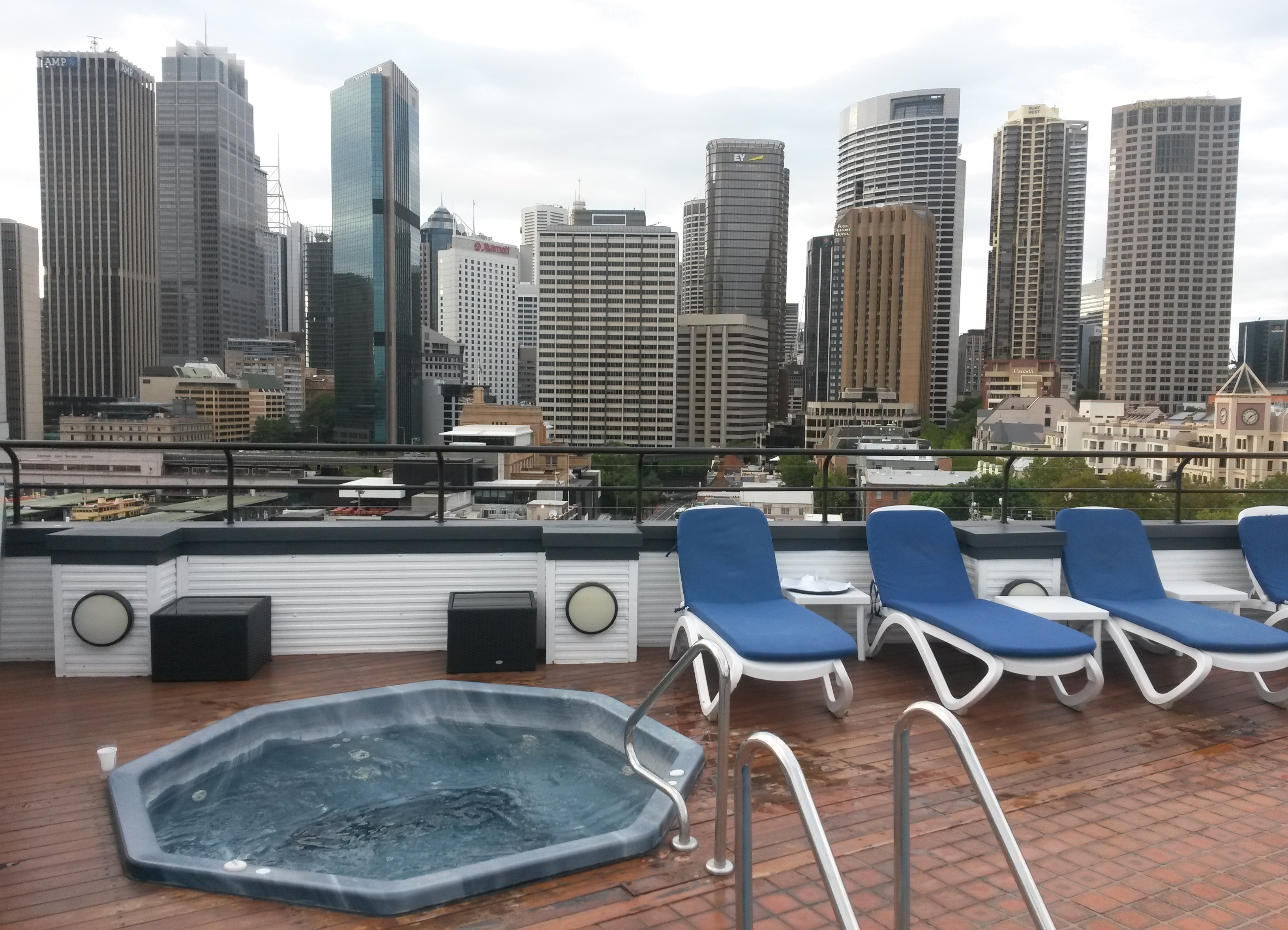 I decided to take a peek at the pool before heading out for the day. The pool and hot tub are located on the roof of the hotel with fantastic views of the CBD, harbour, bridge, and Opera House.