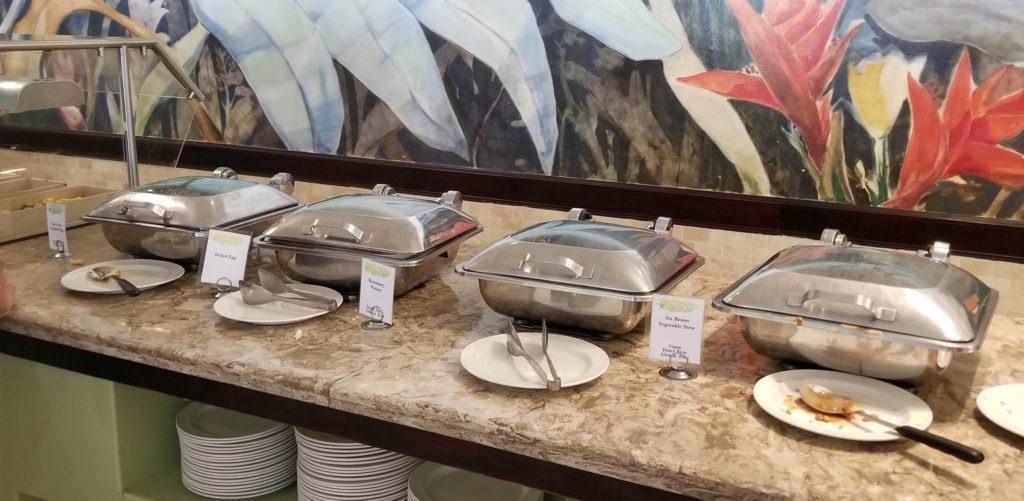 The Portside restaurant serves a buffet-style breakfast, lunch and dinner at various times of day – here are a few pictures of the food that was offered.