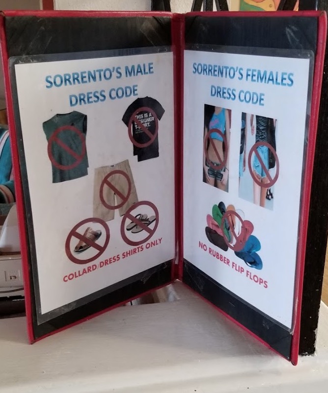 These restaurants require “Resort Elegant” dress code, which is pants and a “collard” shirt for men