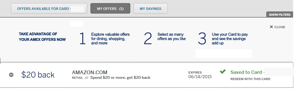Did you get the $20 off $20 Amazon purchase offer on any of your American Express cards?