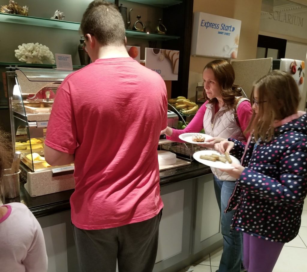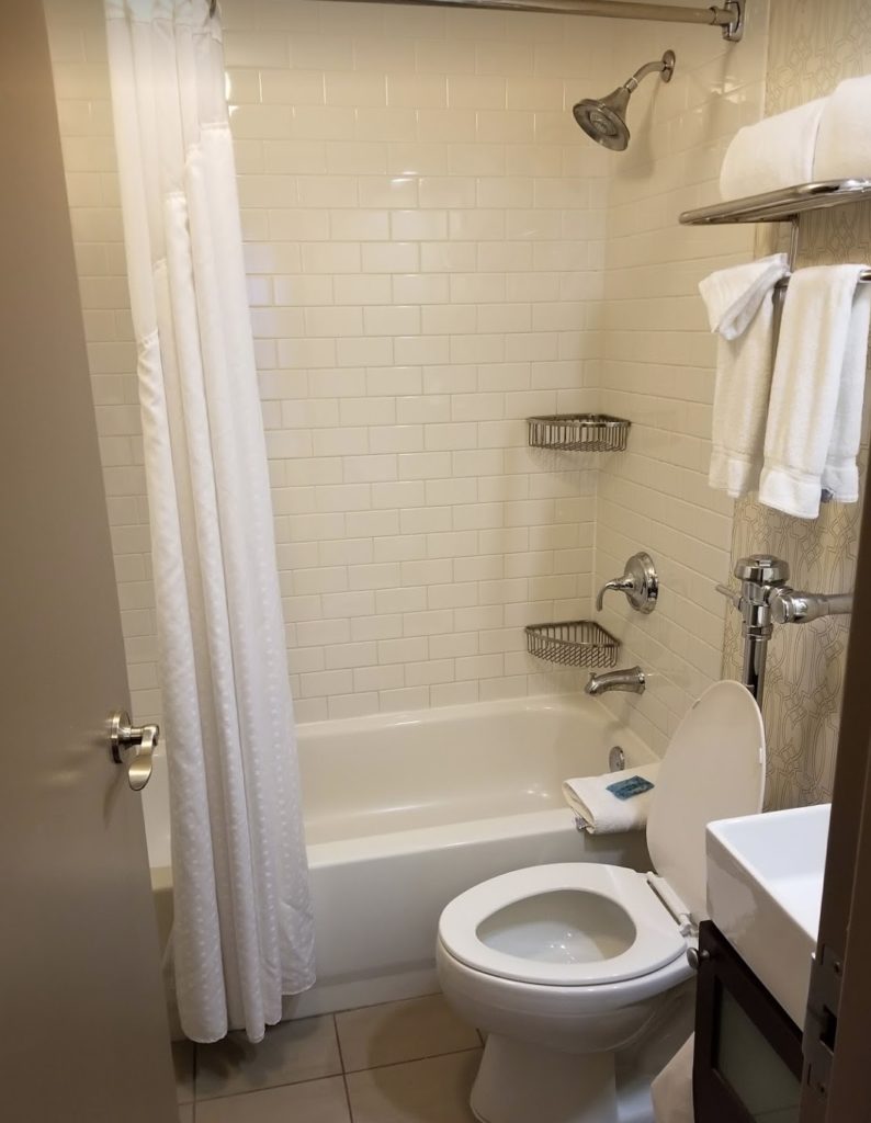 Standard hot breakfast items were also included, which was bacon, sausage, cheese and veggie omelets as well as a pancake maker. Due to our early flight, originally there was not a room available for us when we arrived, so the staff at the Holiday Inn Express Chicago Magnificent Mile / Hotel Cass said we could just come have breakfast and relax while we waited for a room but shortly afterwards a room opened up.