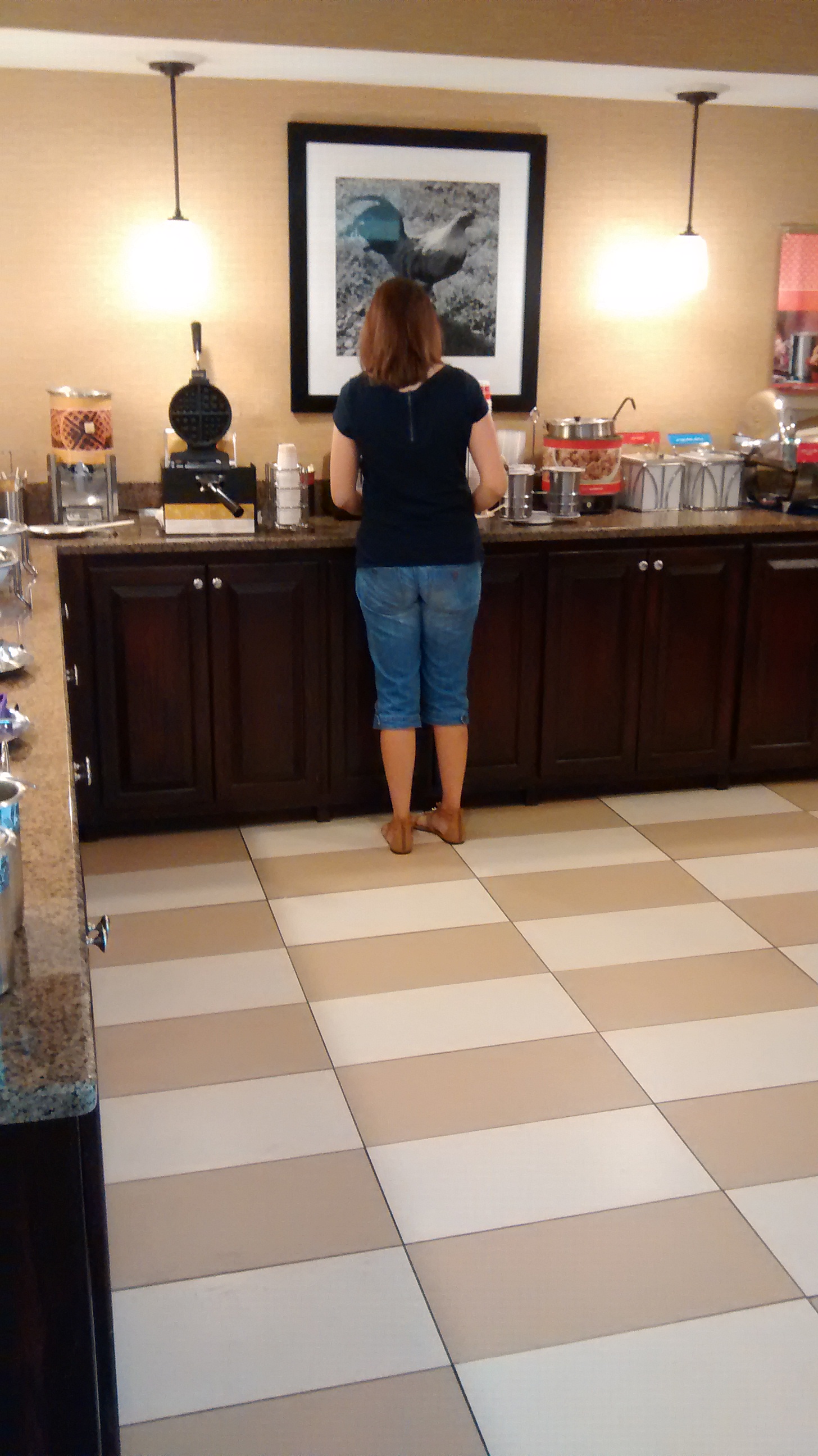 Breakfast is from 6-10 every day and has your standard stuff, including eggs and sausage (and the requisite waffle maker). The staff member who was overseeing breakfast was super-friendly and very pleasant to talk to.