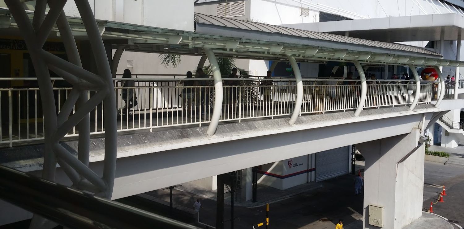 You’ll cross over one road, then continue following the signs through a small shopping mall and cross on a pedestrian bridge OVER a 2nd street. You’ll be about to go through ANOTHER mall (I’ve found that SE Asian countries really like to use shopping malls as a method of transit!). The view will look something like this