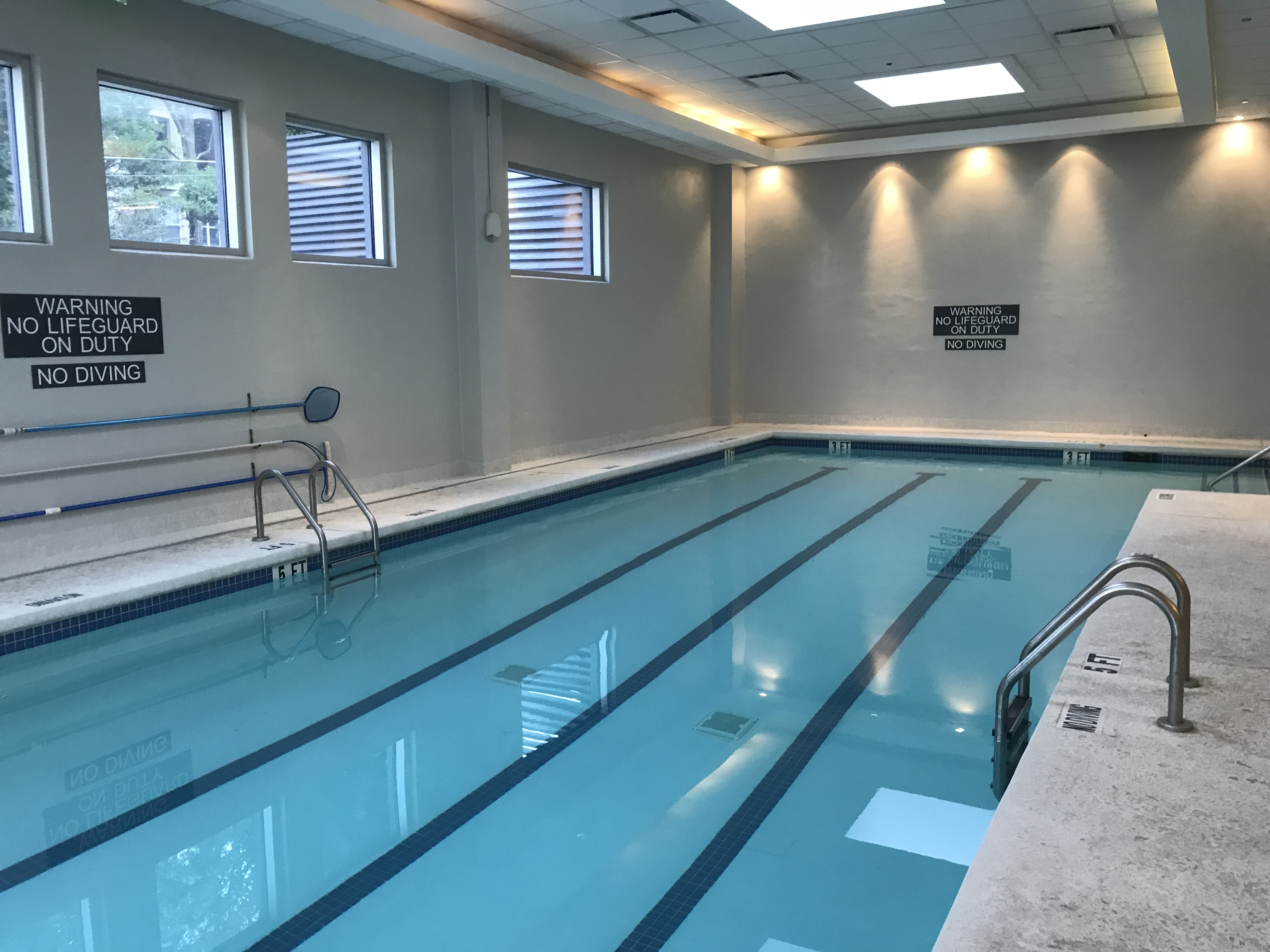 The Hyatt Centric Midtown Atlanta has a very nice saltwater pool that my son and I enjoyed immensely. We had the place to ourselves for most of an hour. The pool ranges from 3 to 5 feet in depth, Lnes are marked on the floor but no dividers.
