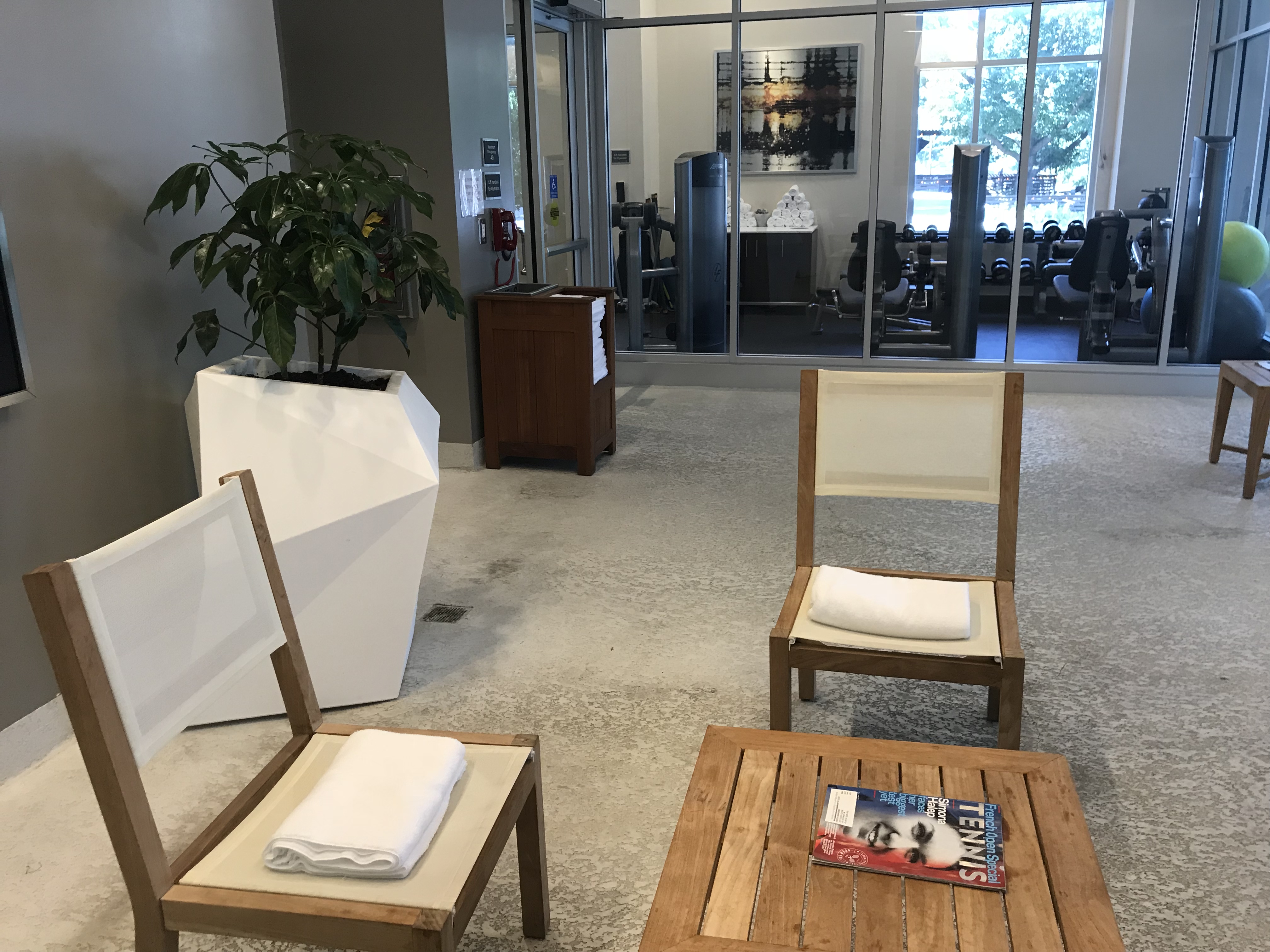 We didn’t spend any time in the fitness center, but I did get one of the other guests to come running out to the pool when I slipped and fell on the edge and tumbled back into the water. I was fine, but my leg ached quite badly the next day.