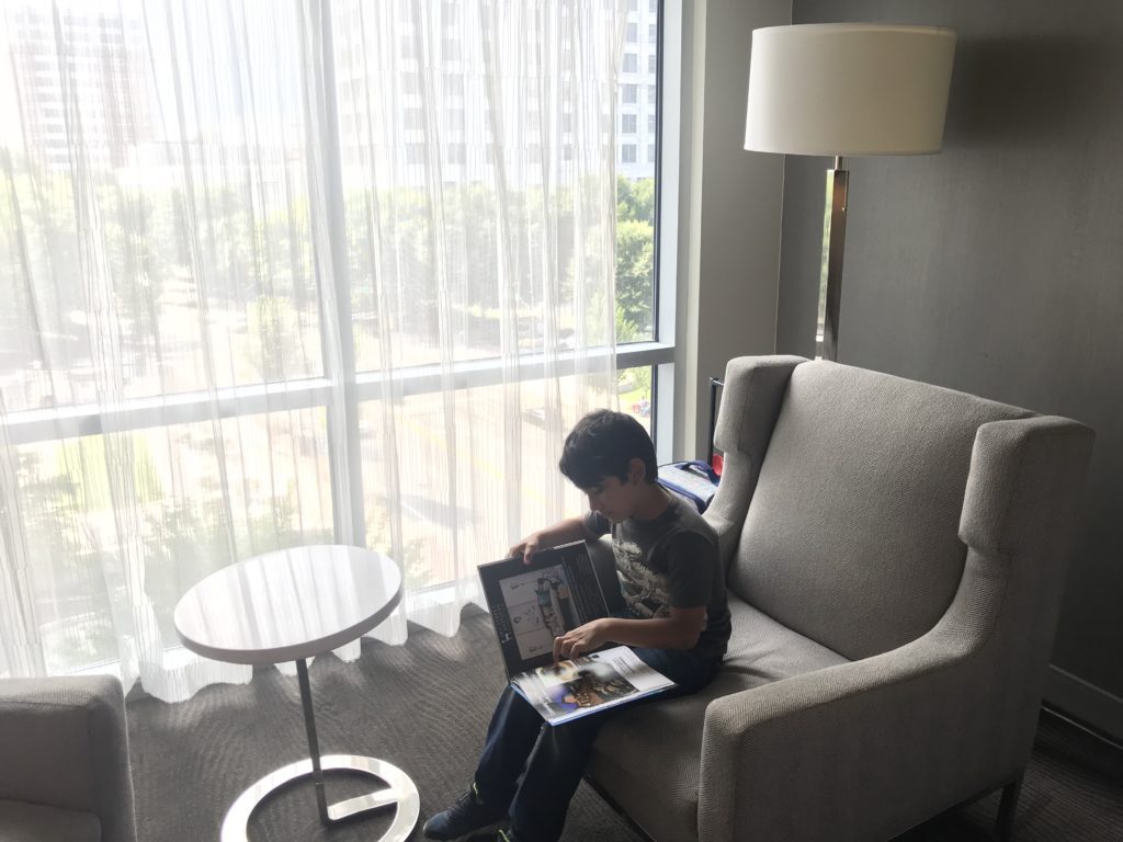 It was good that it was just my son and I on this trip. I generally avoid places which don’t offer two queen beds as the standard setup for more than one bed; sharing a bed with either of the boys nearly always results in a sleepless night if it’s a double. Booking a king plus sofa bed is actually the preferred option when traveling with the two older kids, as my son and I have plenty of space and my pre-teen daughter gets her own bed.