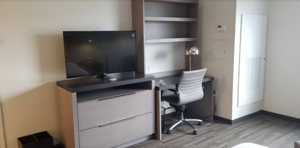 There was a desk with a comfortable chair across the room. Again, there were plenty of outlets, both in the wall as well as on the light fixtures which is nice. One of the most frustrating things is staying in a hotel where there aren’t enough outlets so you have to unplug things in order to charge all of your various devices.