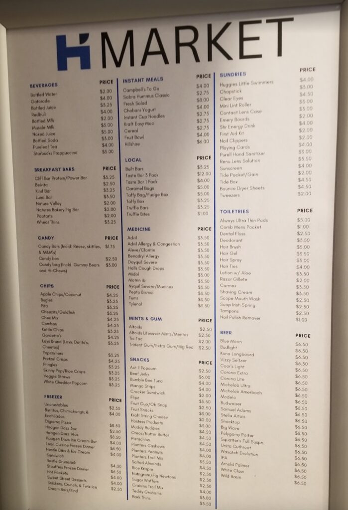 They also have the “H Market” by the front desk with various food, medicines, laundry supplies and other assorted items.