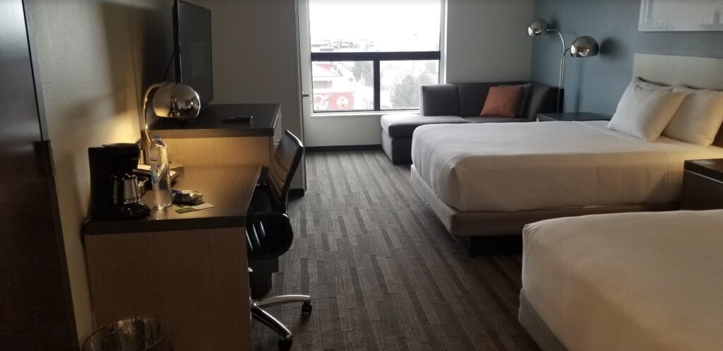 I booked a 2 queen room at the Hyatt House Provo / Pleasant Grove, which also came with a desk and TV.