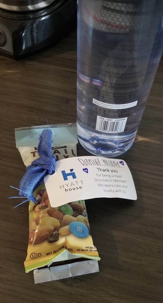Checkin was fast and I was able to get an early checkin (I got there about noon) and a late checkout (till 2pm the next day). I was welcomed as a (lowly) Discoverist member and given a welcome amenity with a bar of chocolate, trail mix and a bottle of water. Though not just ANY water, but IONIZED ALKALINE WATER. I mean it has a pH of 9.5! NINE POINT FIVE!!! 🙂