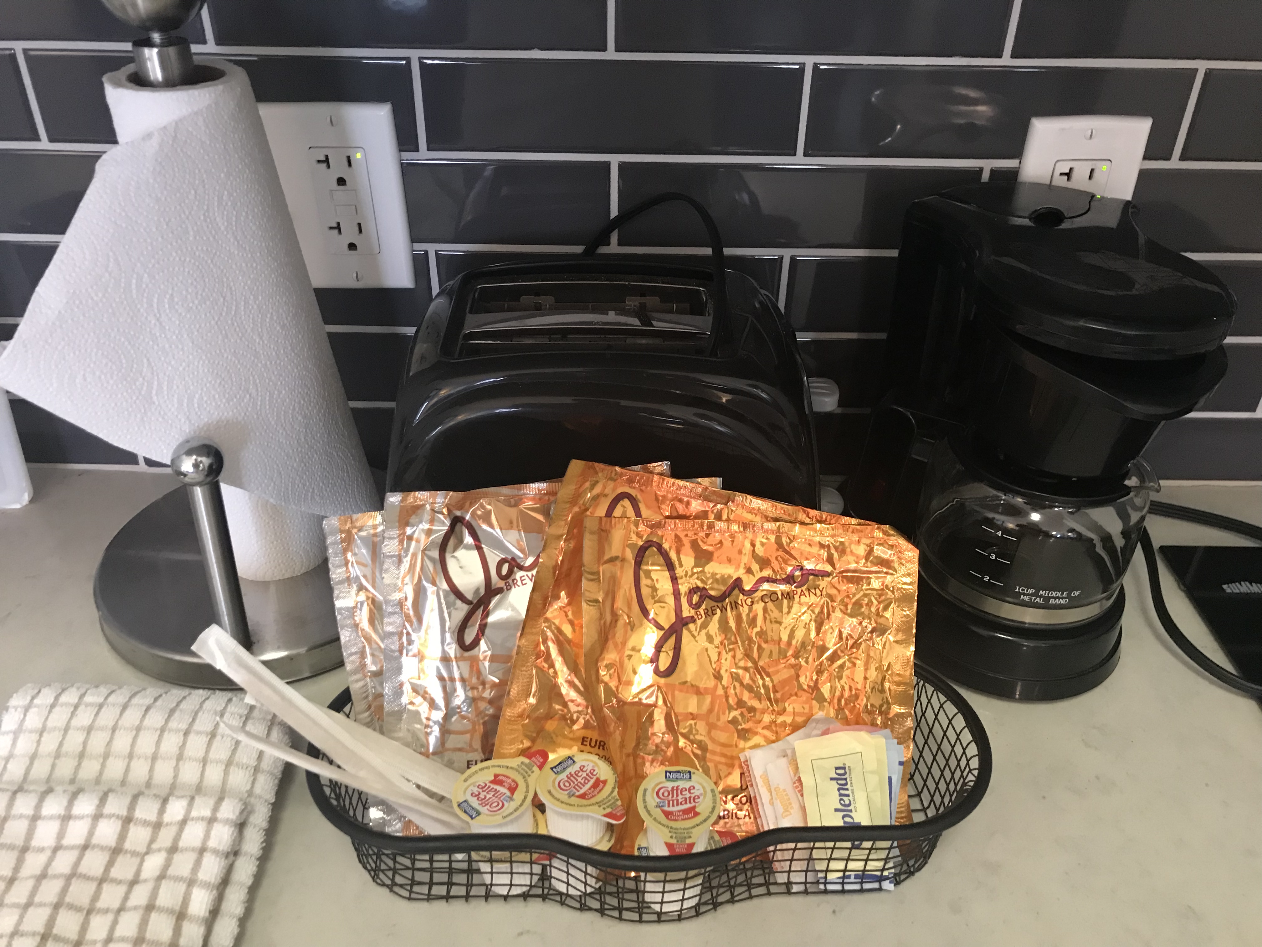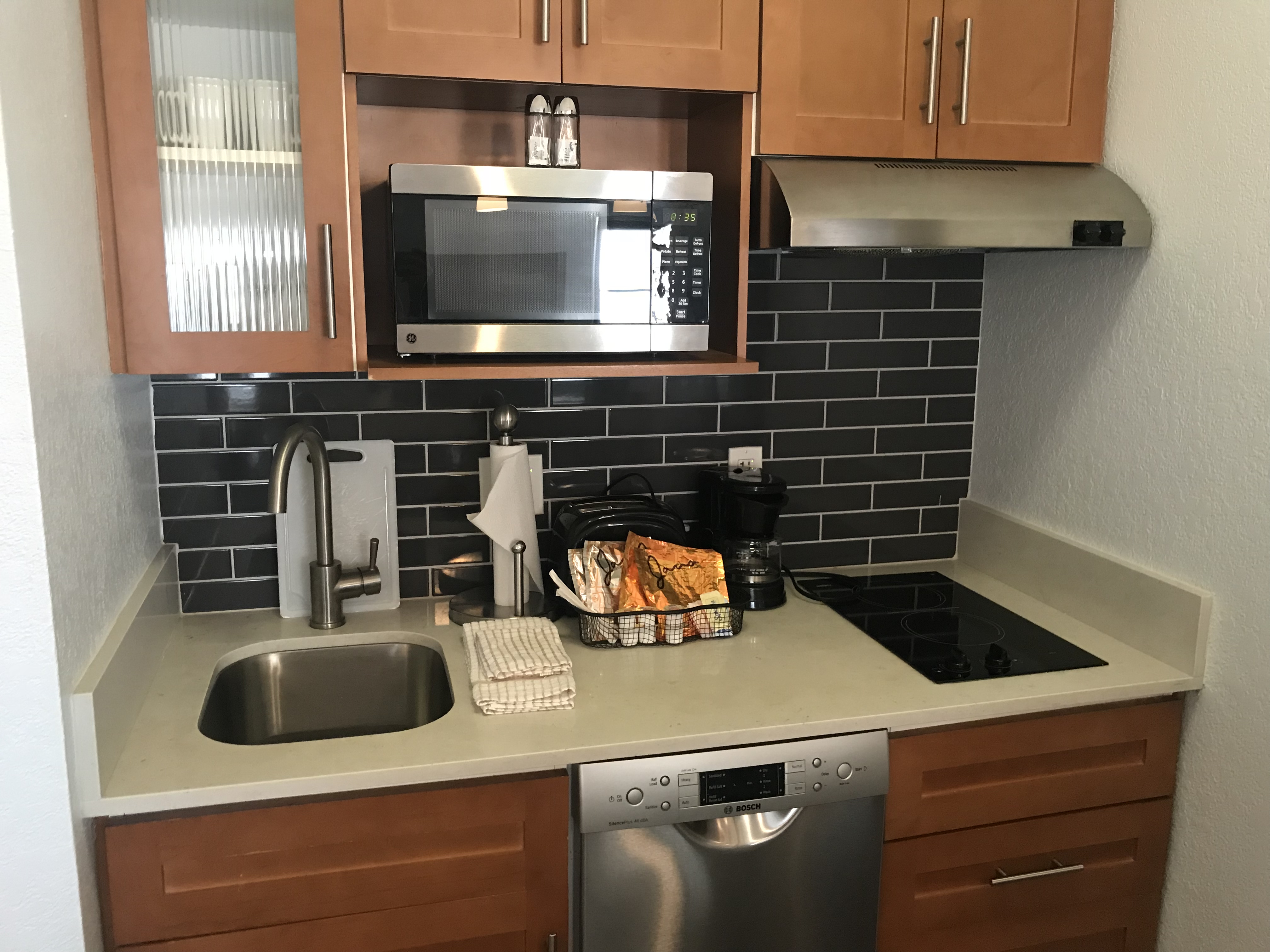 With a full wet bar, microwave, toaster and stovetop, you can make yourself right at home. There is also in-room coffee, of course. But that’s pretty standard.