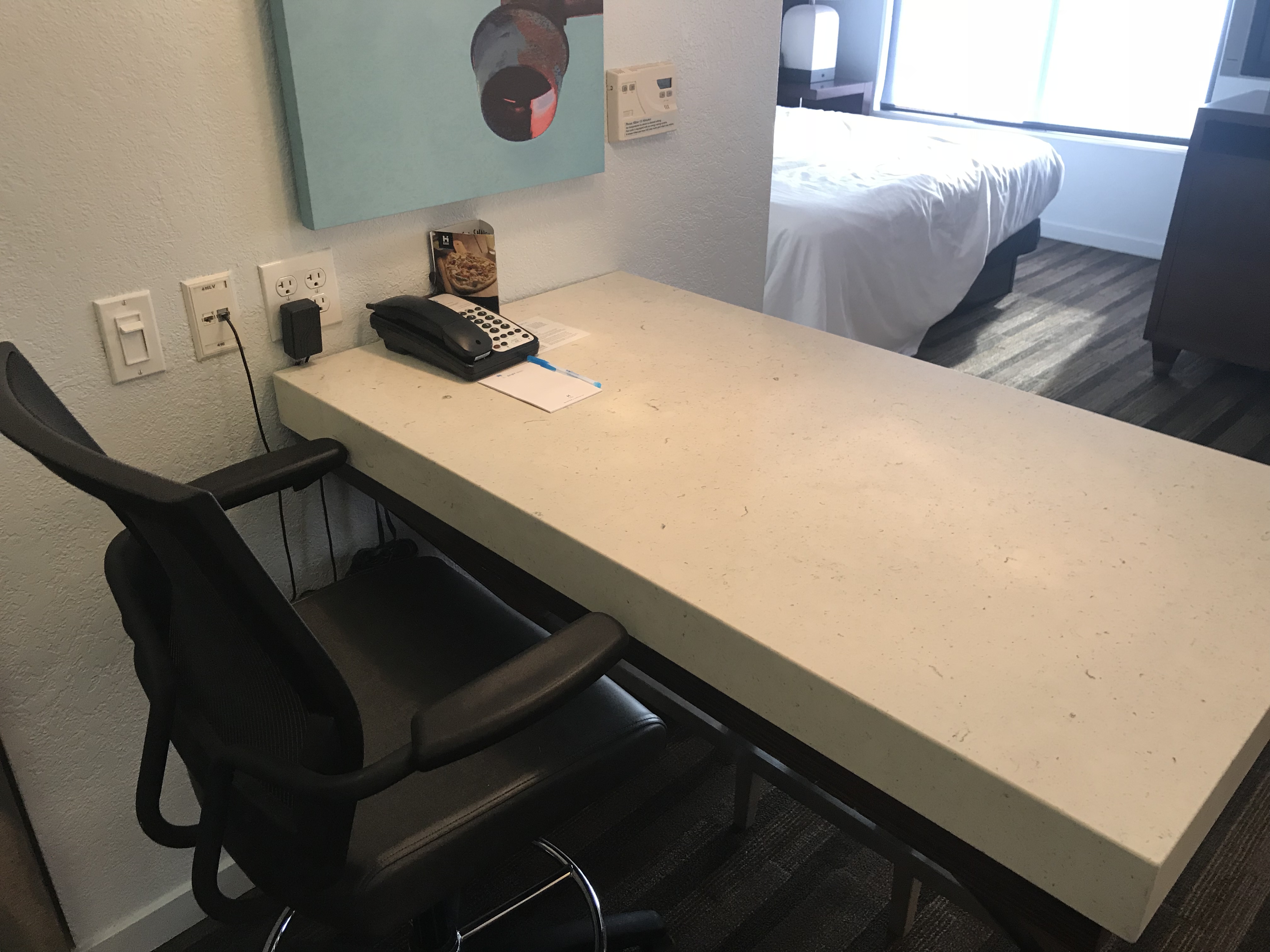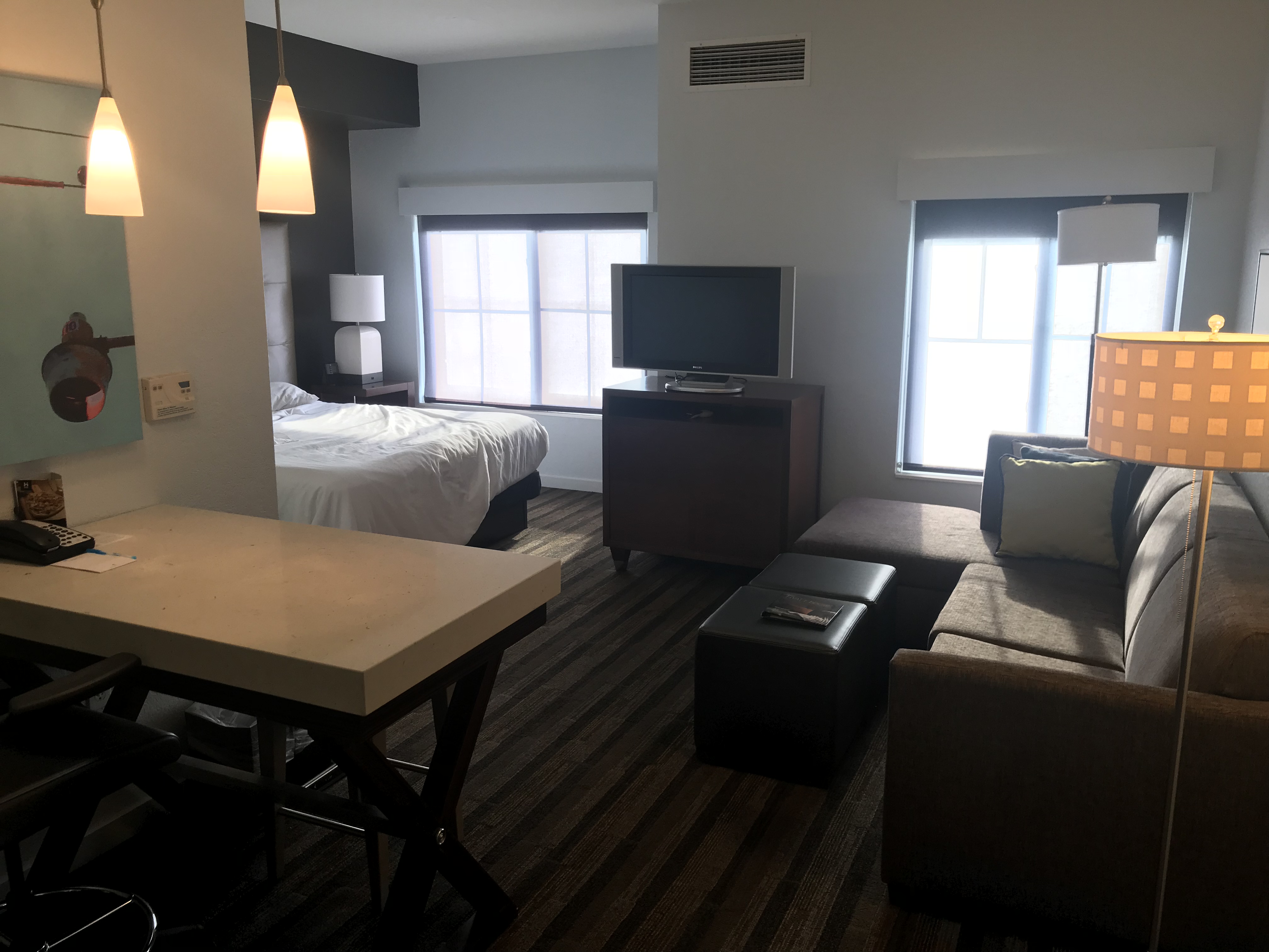 The only drawback to booking a family in the room is the table. The table also functions as the desk in this Hyatt House, and there are only two chairs. If you book four people in the room, you won’t be able to all eat around the table.