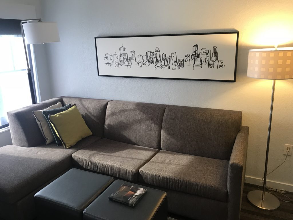If you’re unfamiliar with the Hyatt House brand, let me explain what it’s all about. The rooms are generally much more spacious than the standard hotel room, laid out nicely, and offer a full kitchen. The kitchen part is what makes them one of my wife’s and my favorite brands. Obviously, not everyone wants to cook while on vacation. But we often do, and having a full kitchen is amazing (SEE: The complete beginner’s guide to cooking in a hotel room).