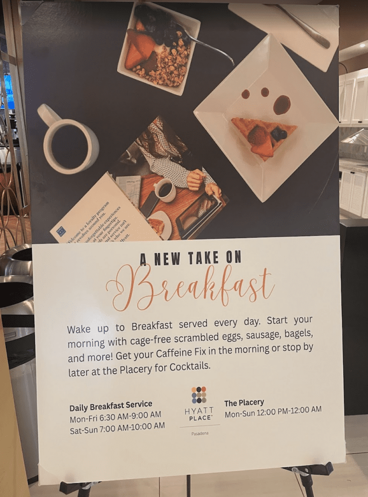The Hyatt Place Pasadena has a number of options for food, similar to many other Hyatt Place hotels.
