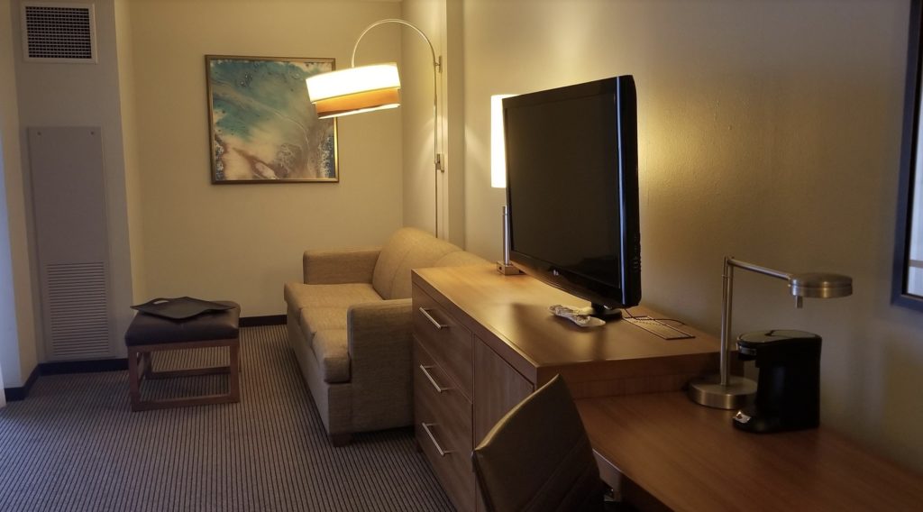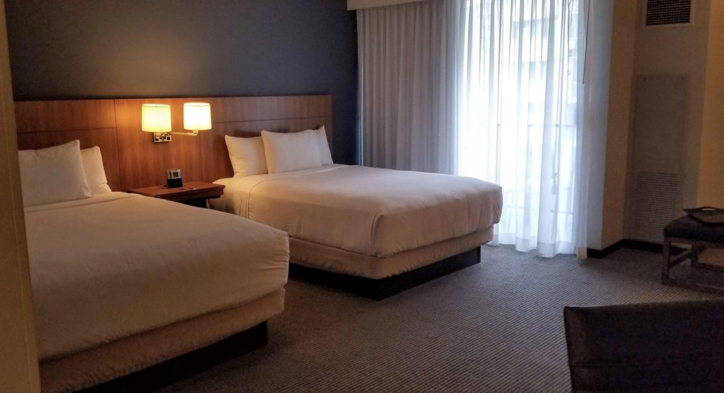 Recently my family and I took an extended family vacation to Hawaii. We stayed about a week in Maui and then flew over to Oahu, staying 4 nights at the Hyatt Place Waikiki Beach. There were 7 of us staying, so we booked two rooms at the hotel, and I asked specifically to have connecting rooms. The manager I was emailing with said she could not guarantee it but would put in a request. We were able to get the connecting rooms, so I thought I would give a Hyatt Place Waikiki Beach hotel review to share my experience with the Hyatt Place Waikiki Beach connecting rooms.