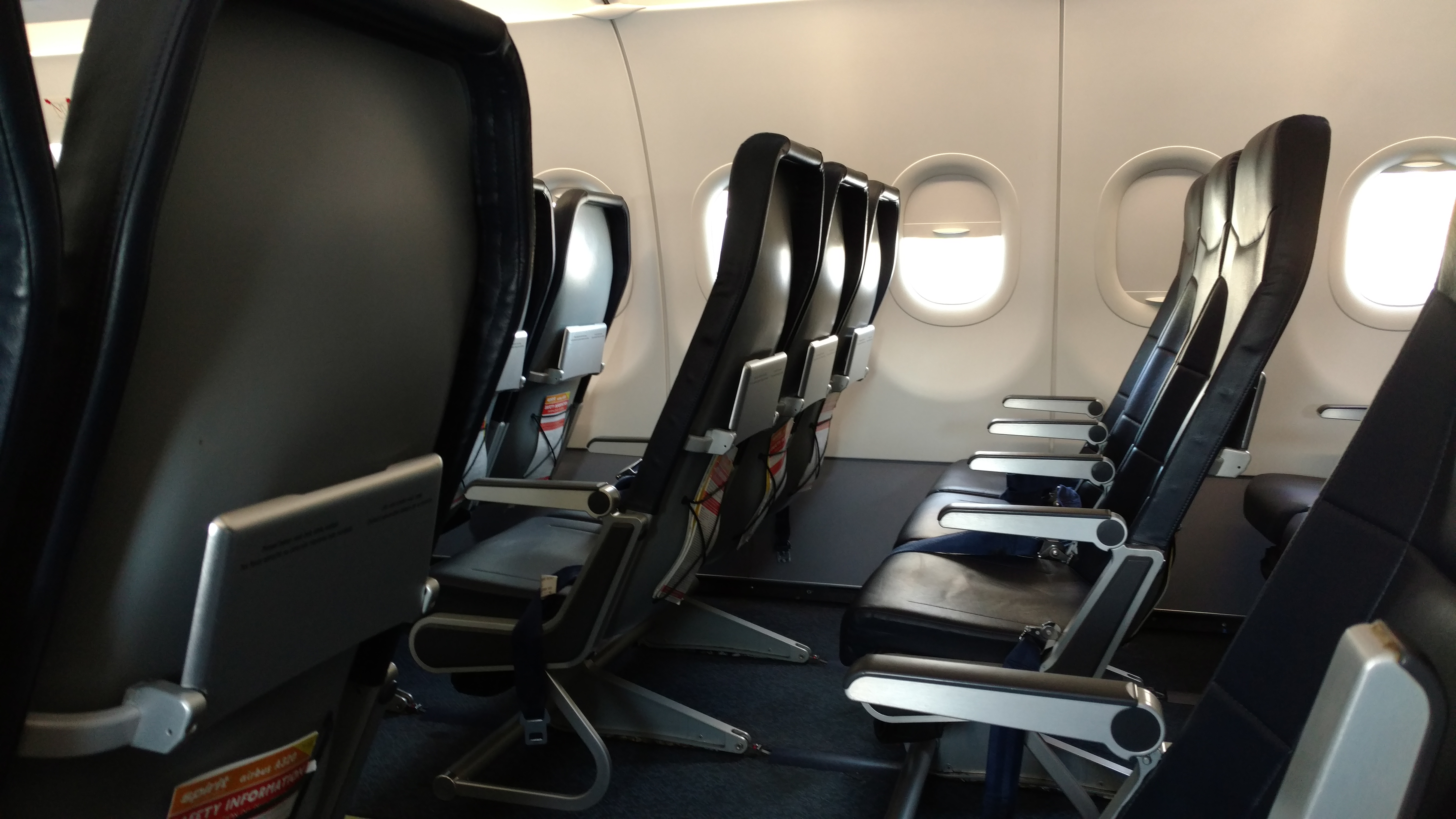 The seats didn’t really bother me too much. Granted, I’m only 5′ 7″, so taller folks will certainly feel tight. I also flew Frontier for the first time earlier this year, and the seats are exactly the same. Rather than a “normal” leather or cloth chair, Frontier and Spirit both have what I’d call a “stretched leather” seat. There isn’t much padding, just a thin cushion and a leather cover, over a metal frame. These seats are common on low cost carriers throughout the world – check out Jason’s experience with RyanAir on very similar seats.