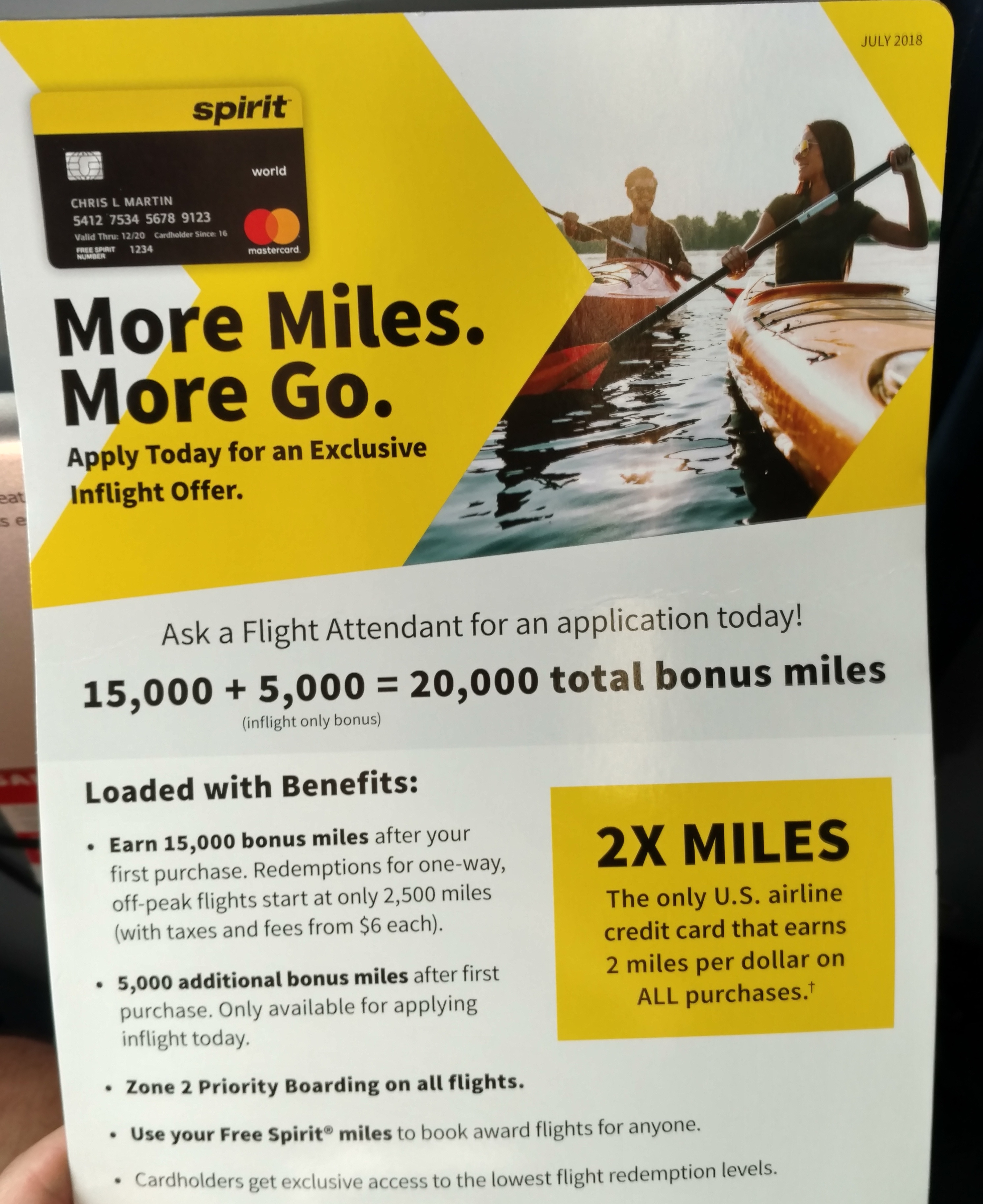 Toward the end of my flight, I saw a small flyer for the Spirit Airlines World Mastercard. Naturally, as a credit card enthusiast, I picked it up.