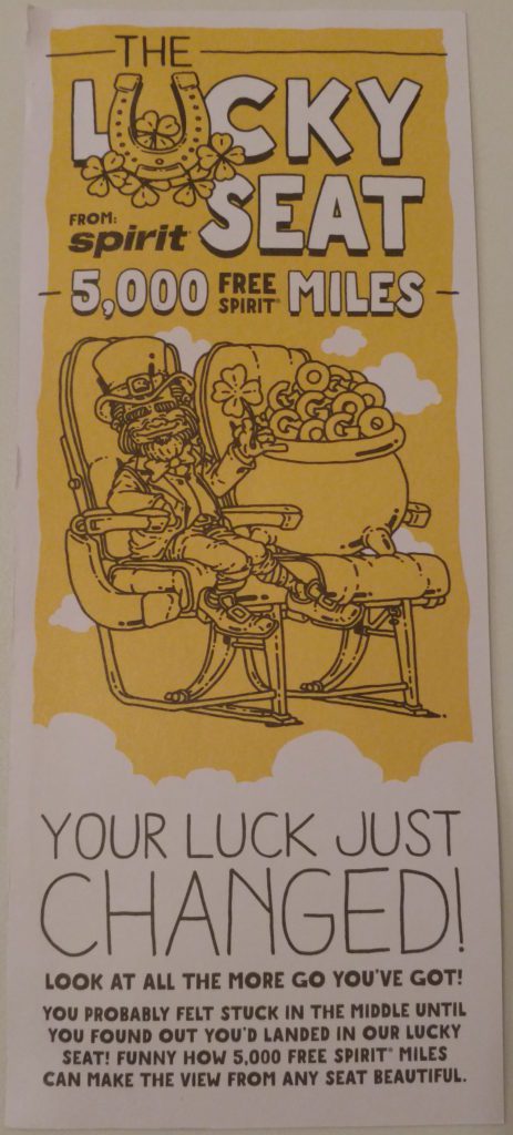 She also offered my a “Lucky Seat” voucher, since they didn’t have the new credit card application with 1,000 further Free Spirit Miles. I had no idea what a Lucky Seat voucher was…