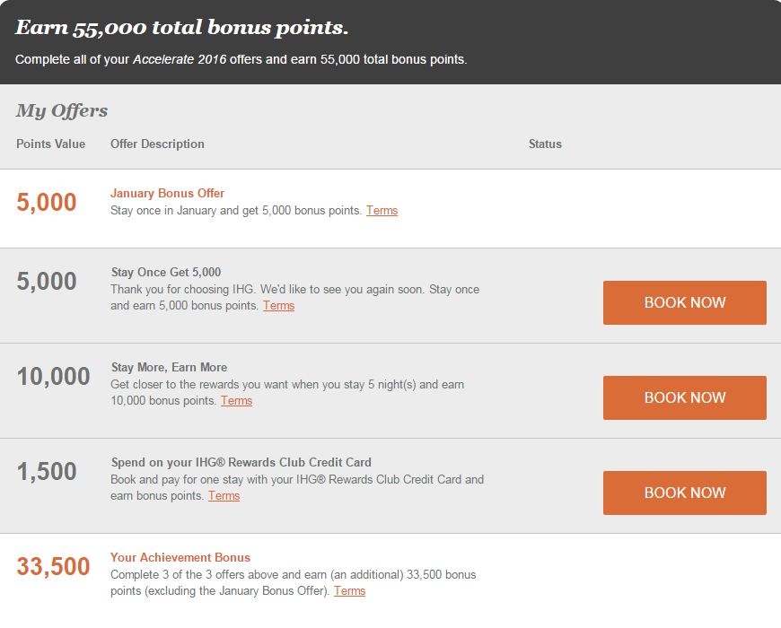 I can get 3 of my offers (January Bonus, Stay once get 5,000 and Spend on my IHG credit card) with just one stay. I originally thought those 3 offers would complete my Achievement bonus, but I believe when they say 3 of the 3 offers they mean not including the January Bonus Offer (it does say that, but IHG has definitely had issues with bonus offer description counting before!)