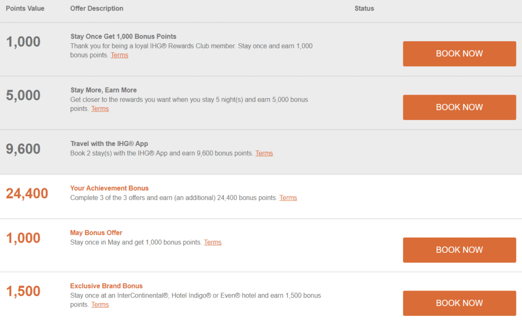 When all is said and done, I’d have to stay a bare minimum of 5 nights, across 2 stays for all the points. One of those stays would have to be in May, and one would have to be in a Hotel Indigo or Even hotel. My total haul would be 42,500 IHG points. That puts me at 8,500 IHG points earned per night, or a value of $42.5 per night (I value IHG points at a conservative half cent per point).