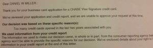 chase-ink-cash-denial-letter-524 by Dan Miller | Dec 20, 2016 | 0 comments Newsletter SignupJoin the PWaC newsletter filled with credit card and travel tips Join Now! You have Successfully Subscribed! Submit a Comment Cancel replyYour email address will not be published. Required fields are marked *Comment * Name * Email * Website Δ
