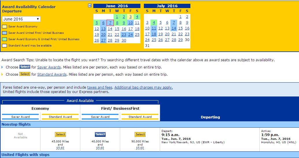 You do have to be careful searching with United because even when it shows some availability connecting, it’s a “Mixed Cabin” award, where you are in Economy for the leg from Honolulu to California (either LAX or SFO) and then in First for the transcontinental flight.