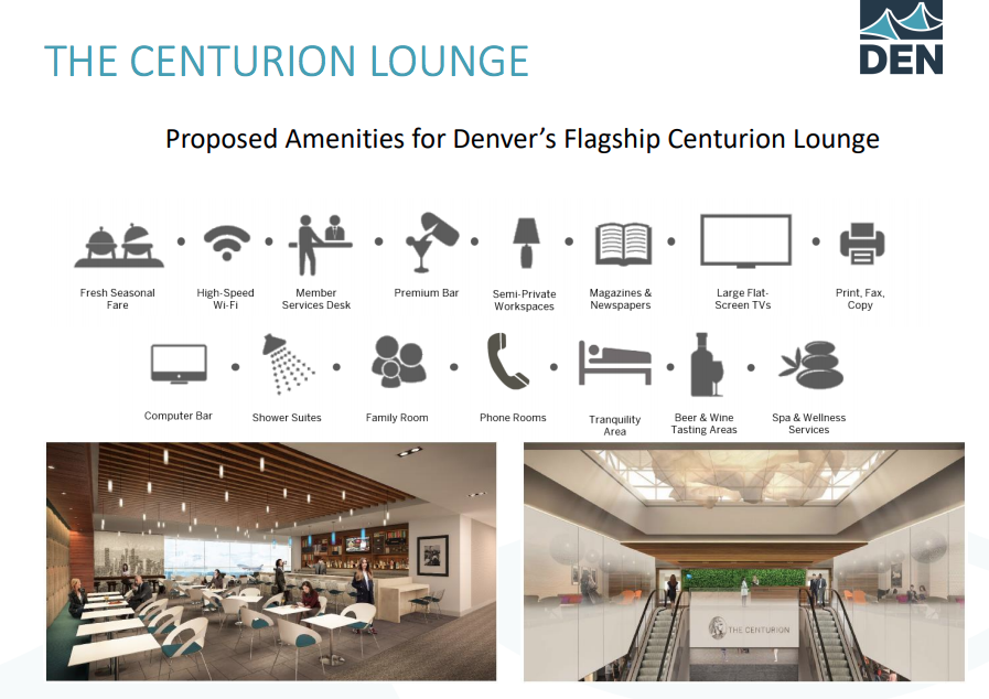 The Denver Centurion lounge would be American Express’s 10th lounge in the states (assuming their JFK lounge opens first). Scrolling through the presentation, it appears AmEx is pulling out all the stops for Denver. Food, bar service, and a spa, oh my!