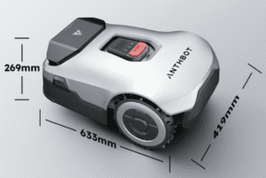 a small robot with a red button