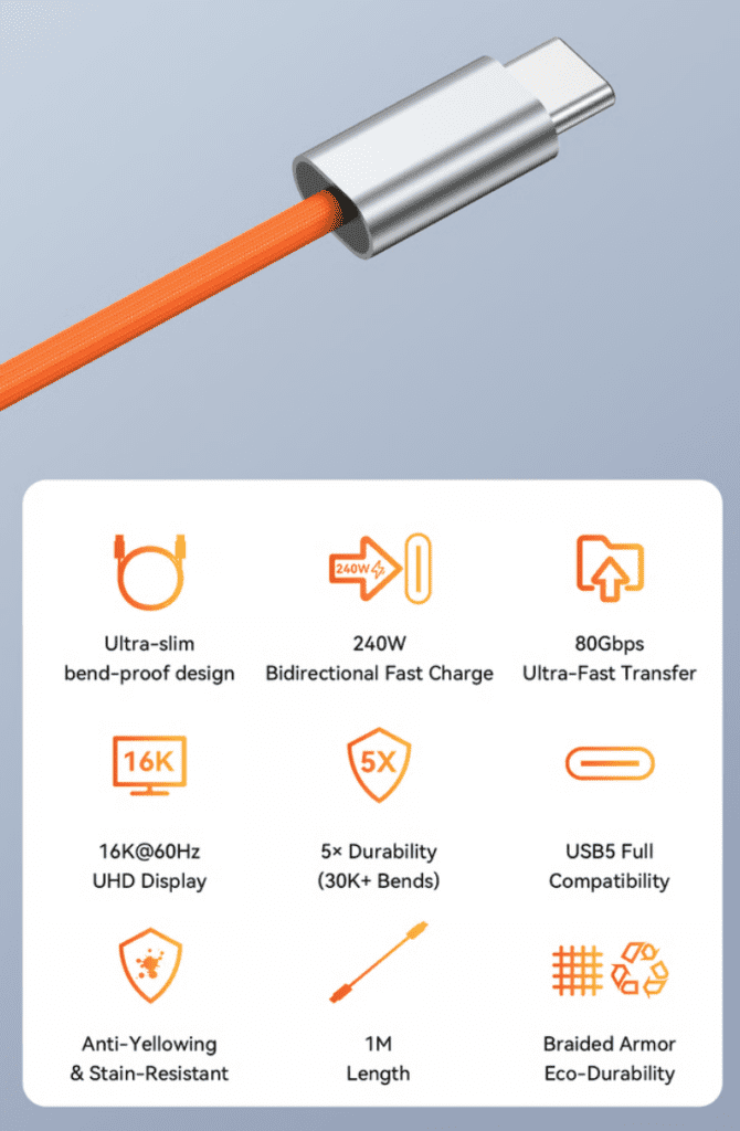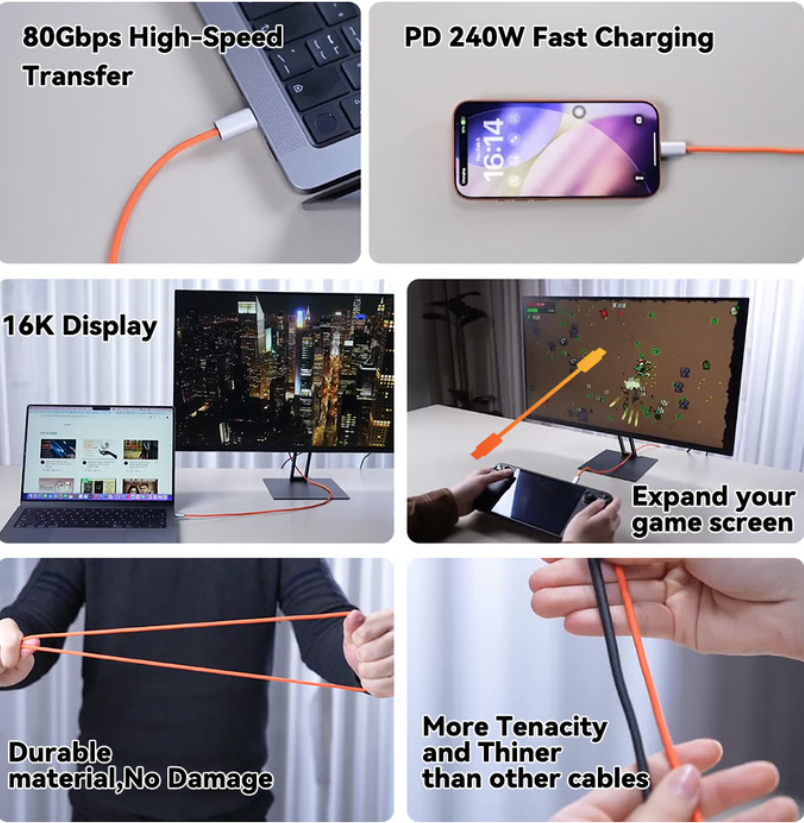 SANJINZY 240W Hyper-Thin Metal USB-C Cable features