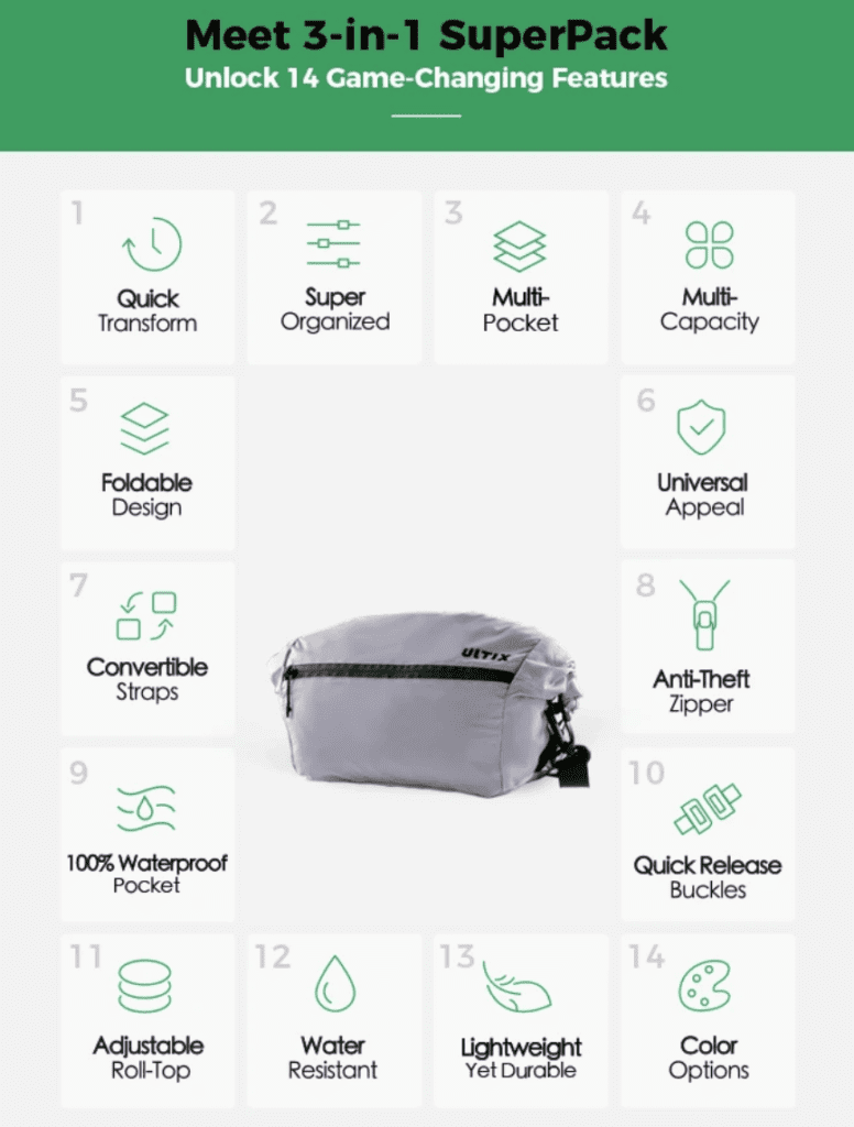SuperPack Backpack and Sling features